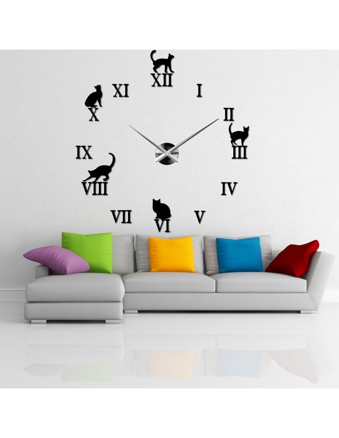 Autocolant de perete cu pisică și ceas - DIY CAFORD