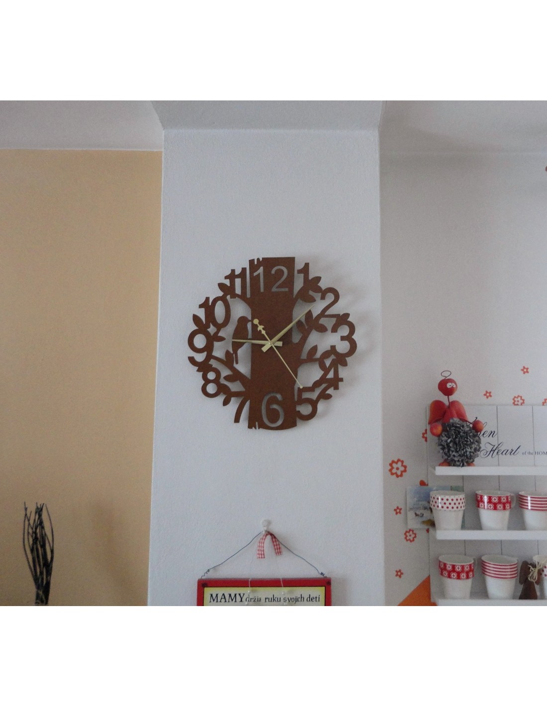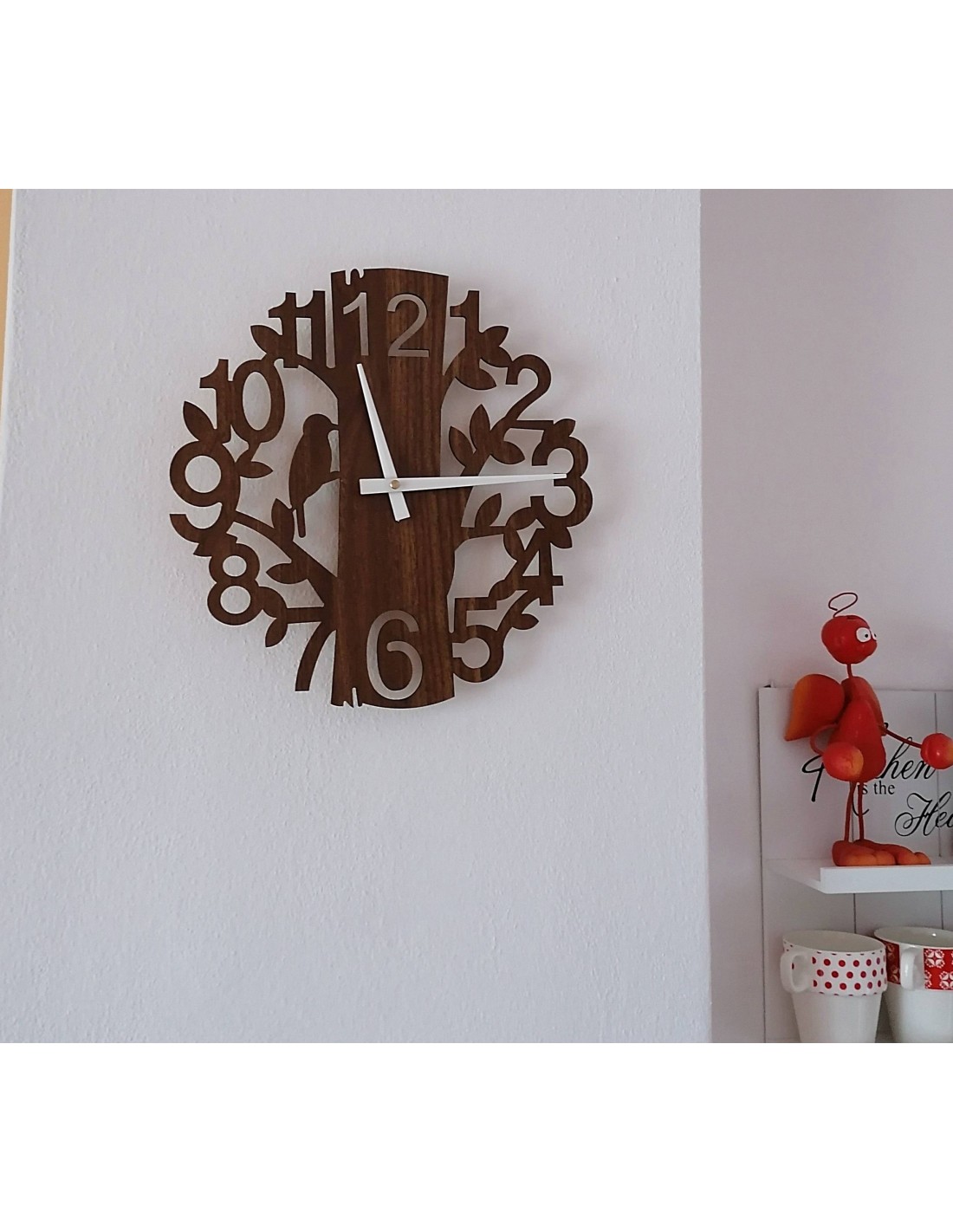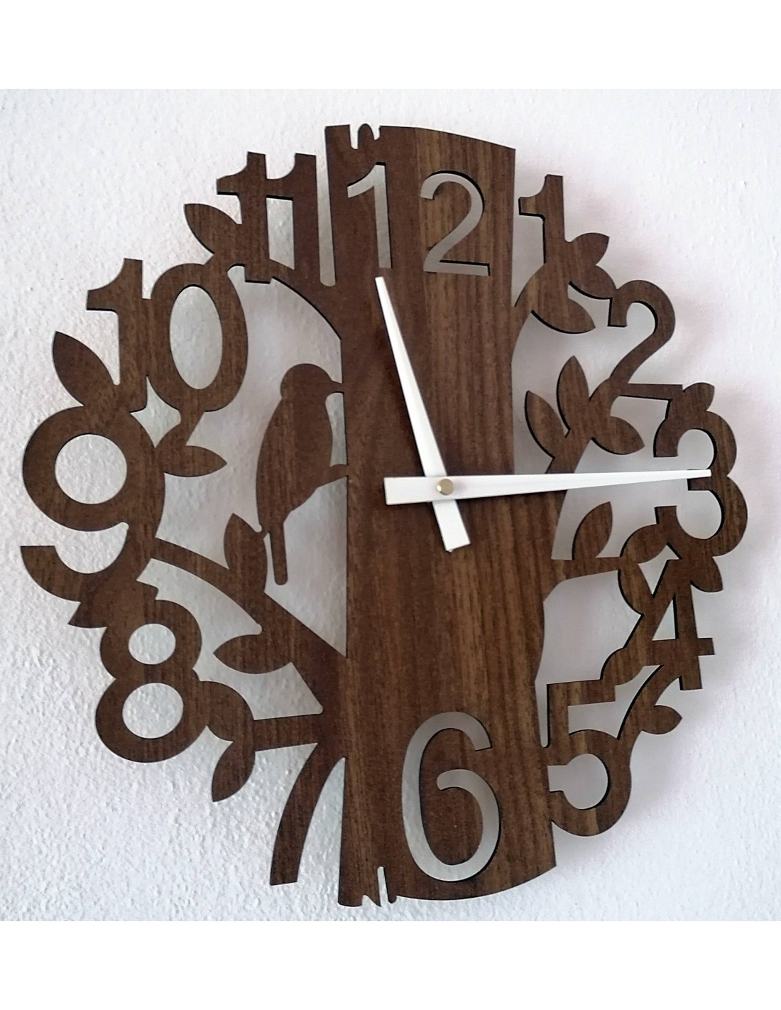 Ceasul Bird este un ceas de perete din lemn care combină măsurarea precisă a timpului cu estetica naturală.