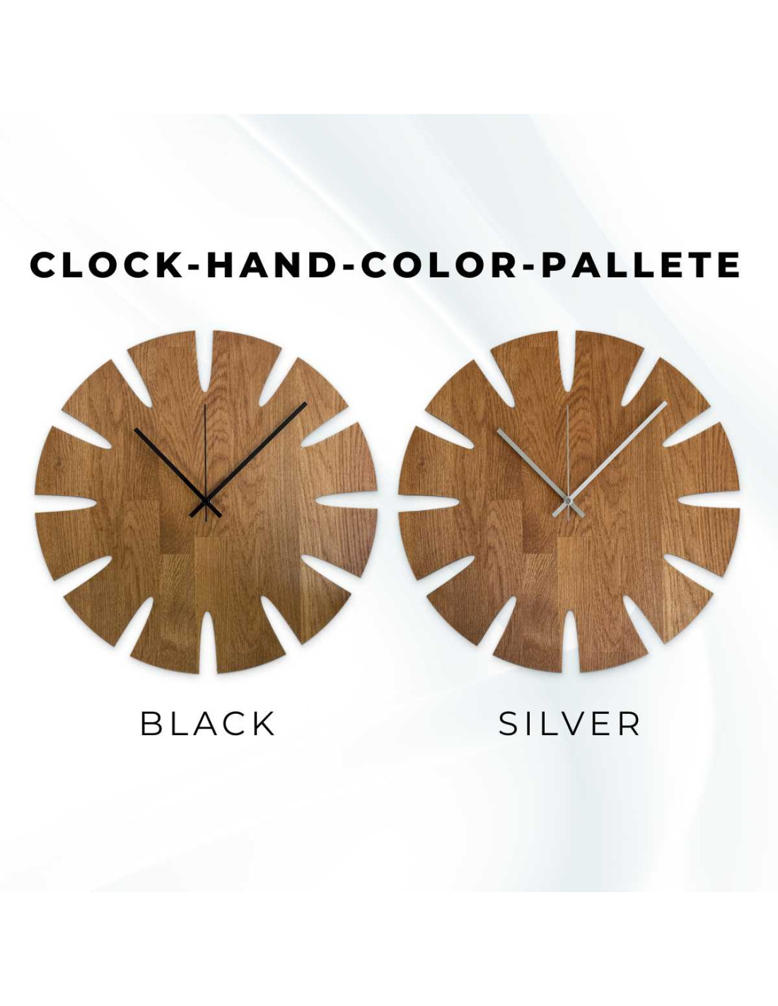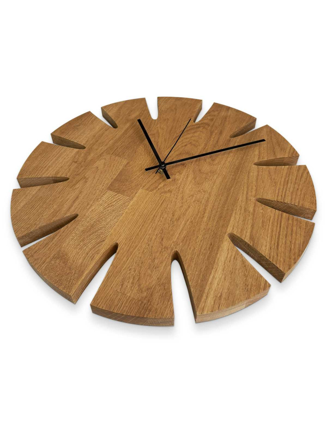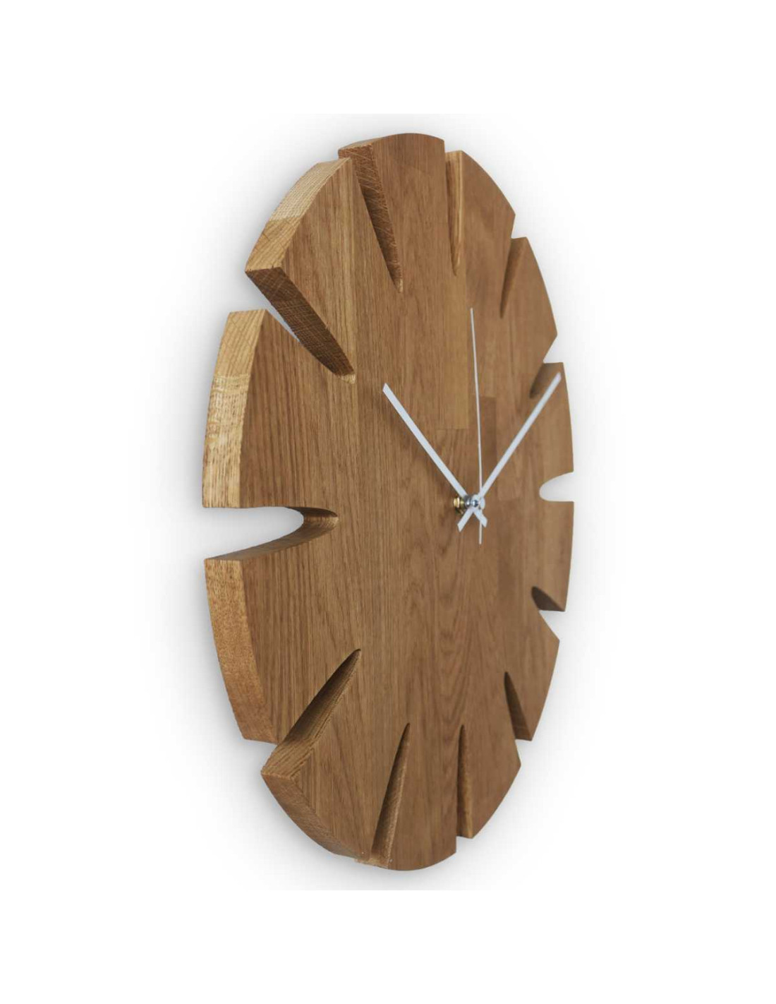 Fiecare ceas este fabricat din panouri masive de stejar , tăiate cu precizie folosind tehnologia CNC.