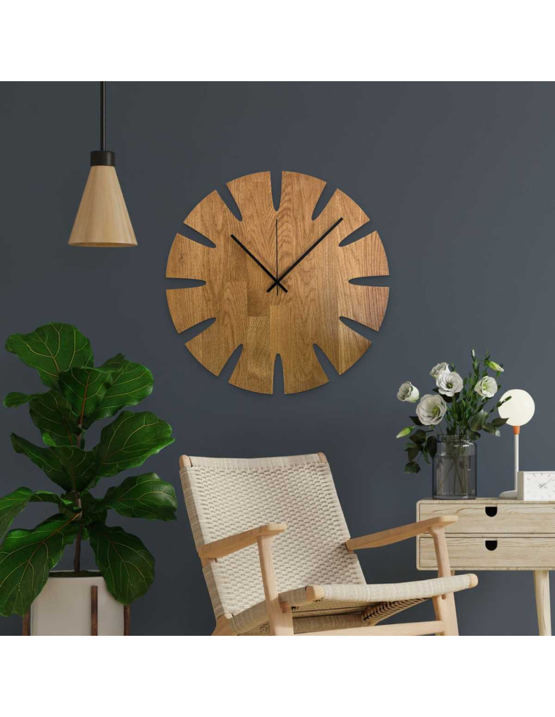 Ceasurile de perete elegante, realizate din lemn natural, aduc interiorului un design atemporal și un decor minimalist .