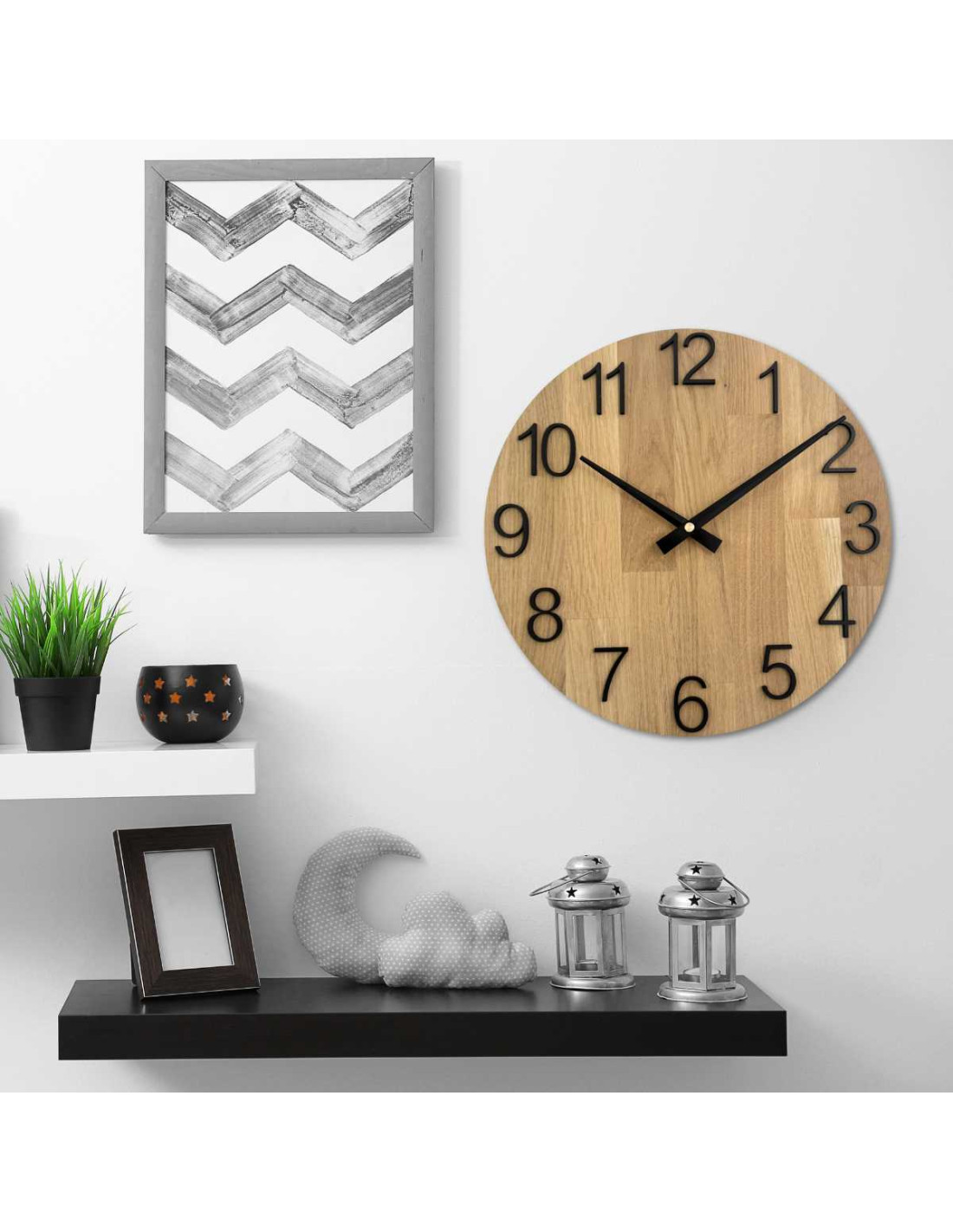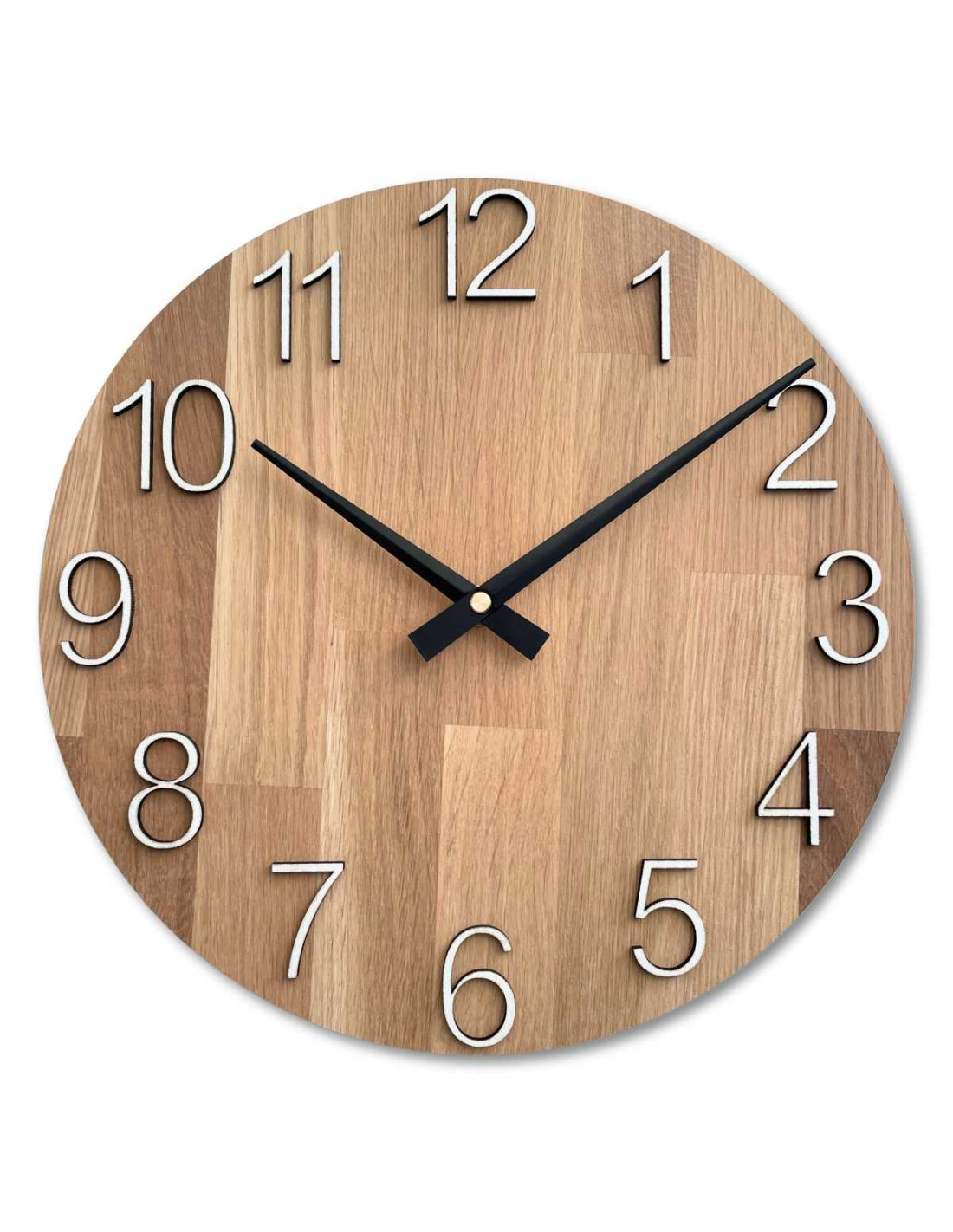 Ceas de perete elegant din stejar masiv - ace negre | RODRA