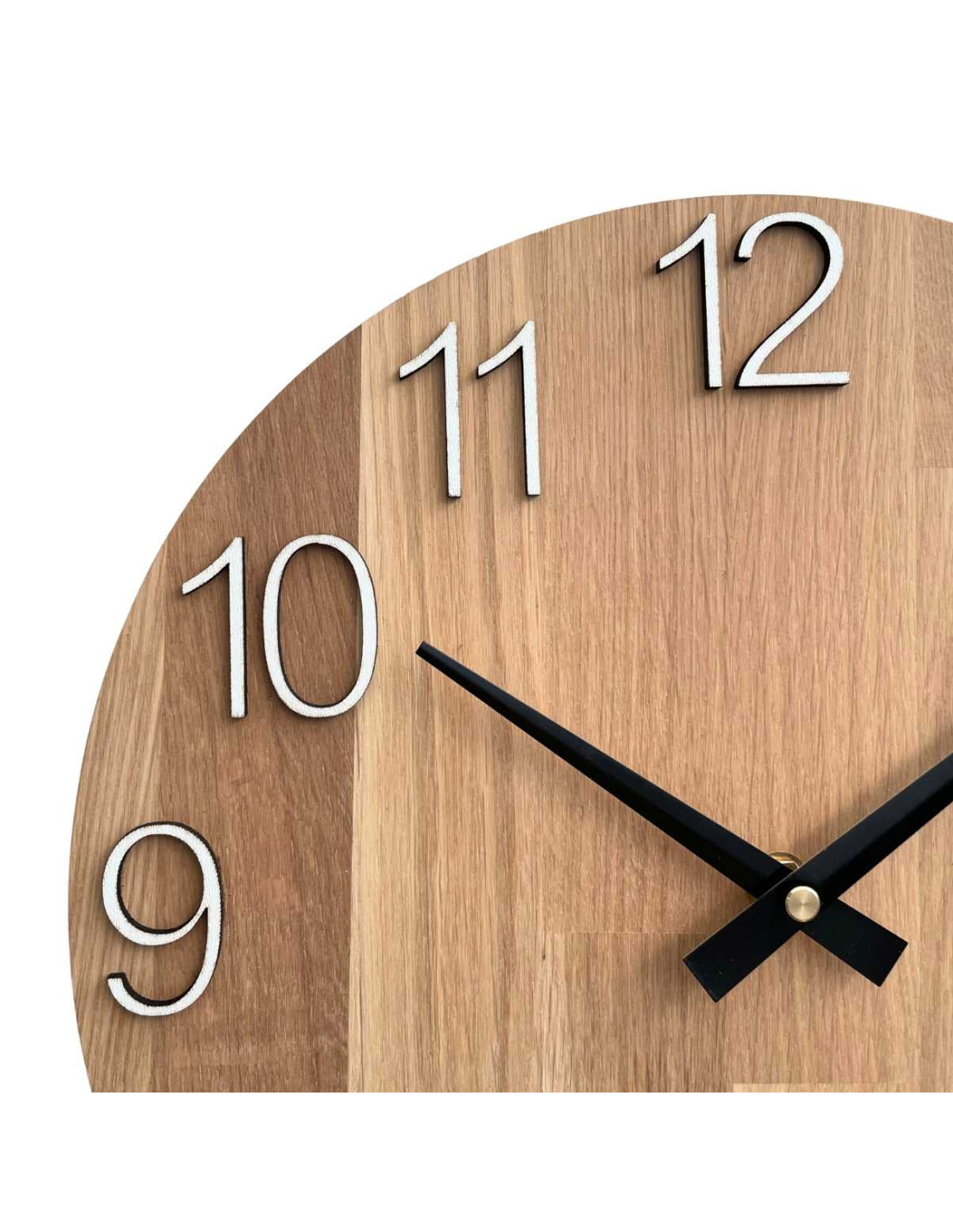 Ceas de perete elegant din stejar masiv - ace negre | RODRA