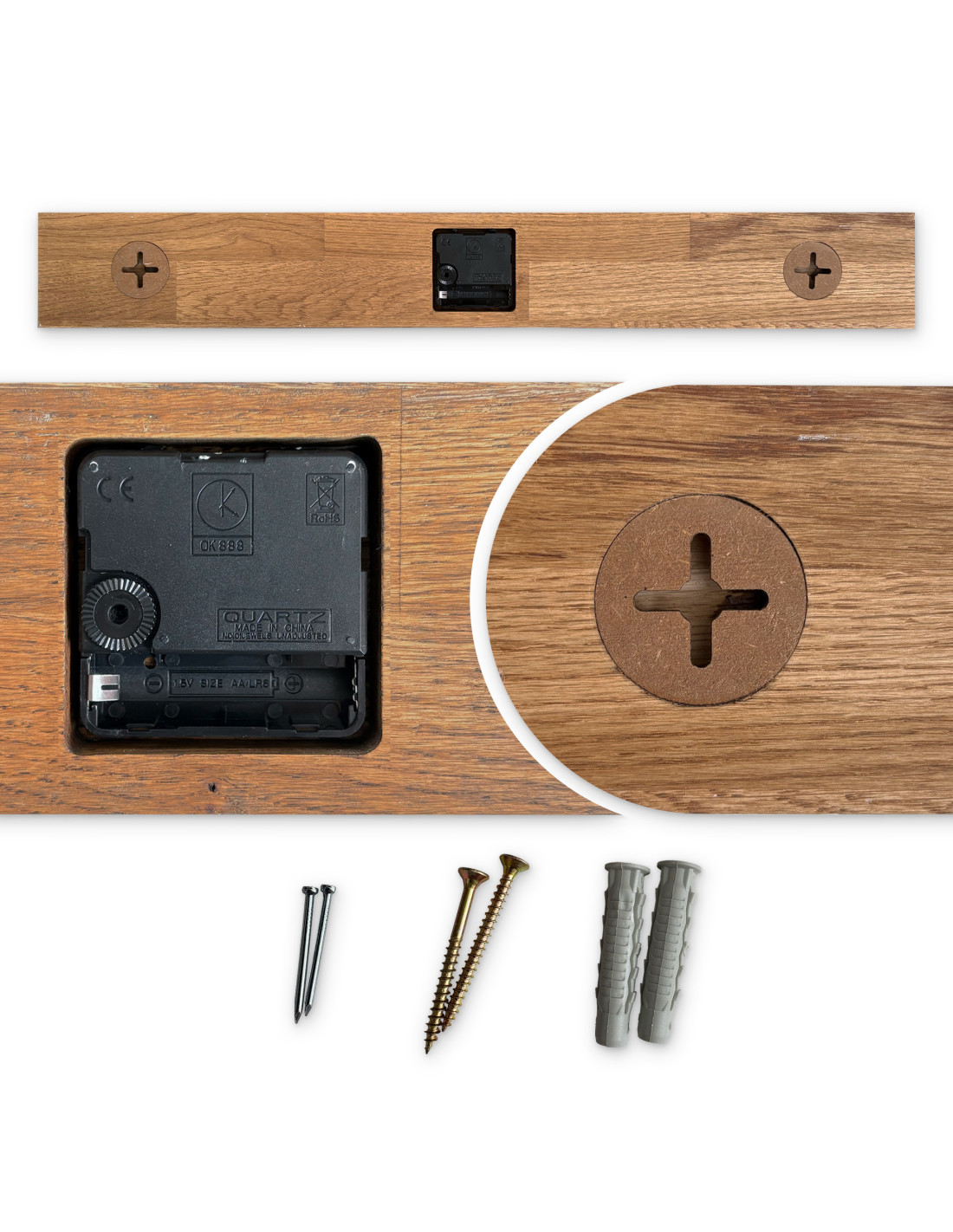 Fiecare ceas este fabricat din panouri masive de stejar , care sunt mai întâi tăiate cu precizie în forma și dimensiunea dorite folosind tehnologia CNC.