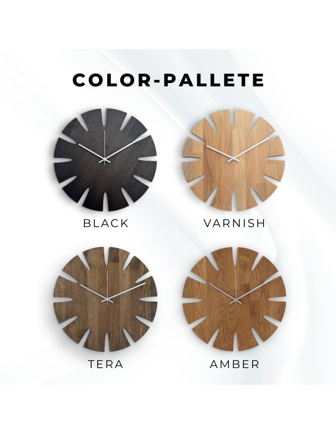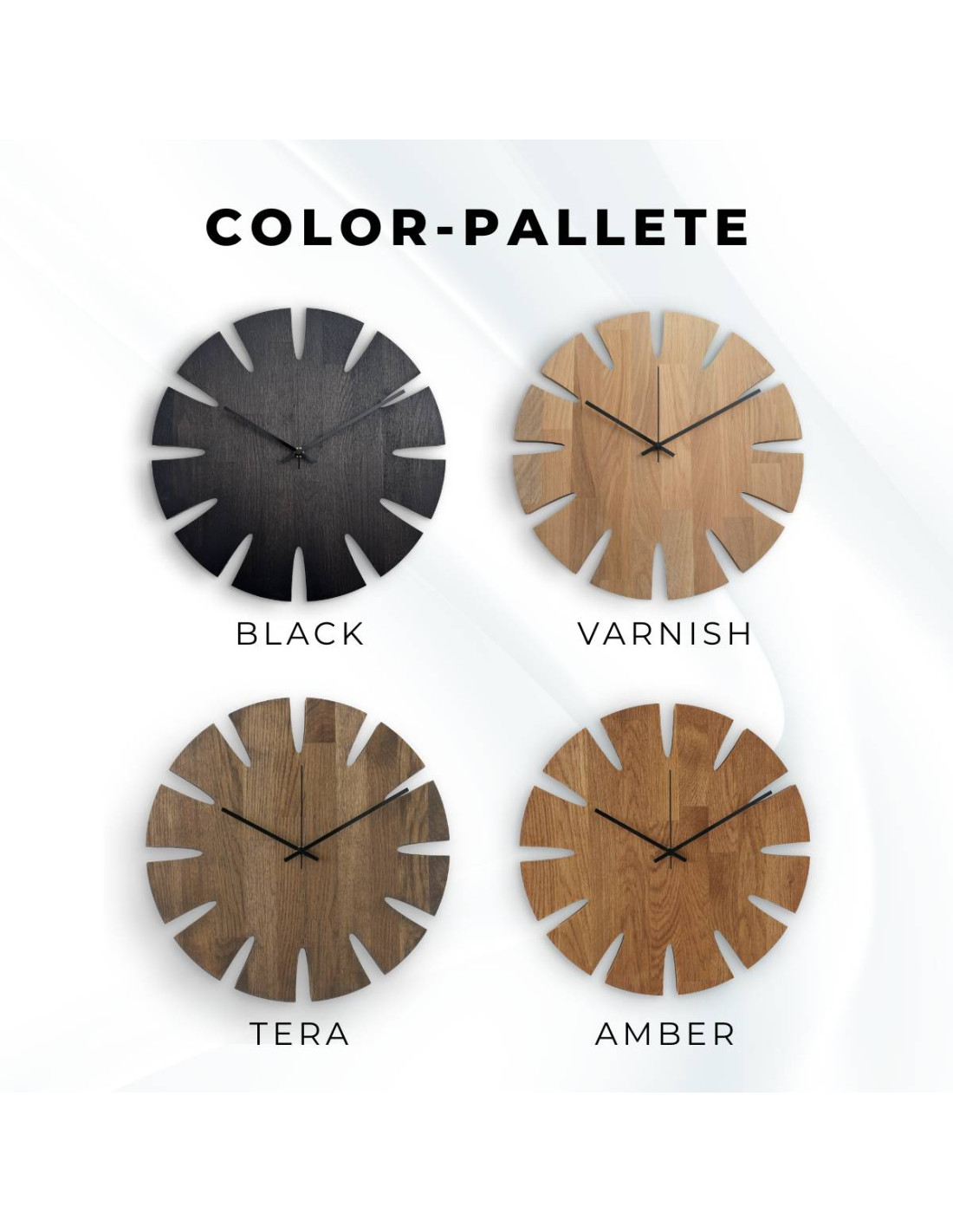 Fiecare ceas este fabricat din panouri masive de stejar, care sunt mai întâi tăiate cu precizie în forma și dimensiunea dorite folosind tehnologia CNC.
