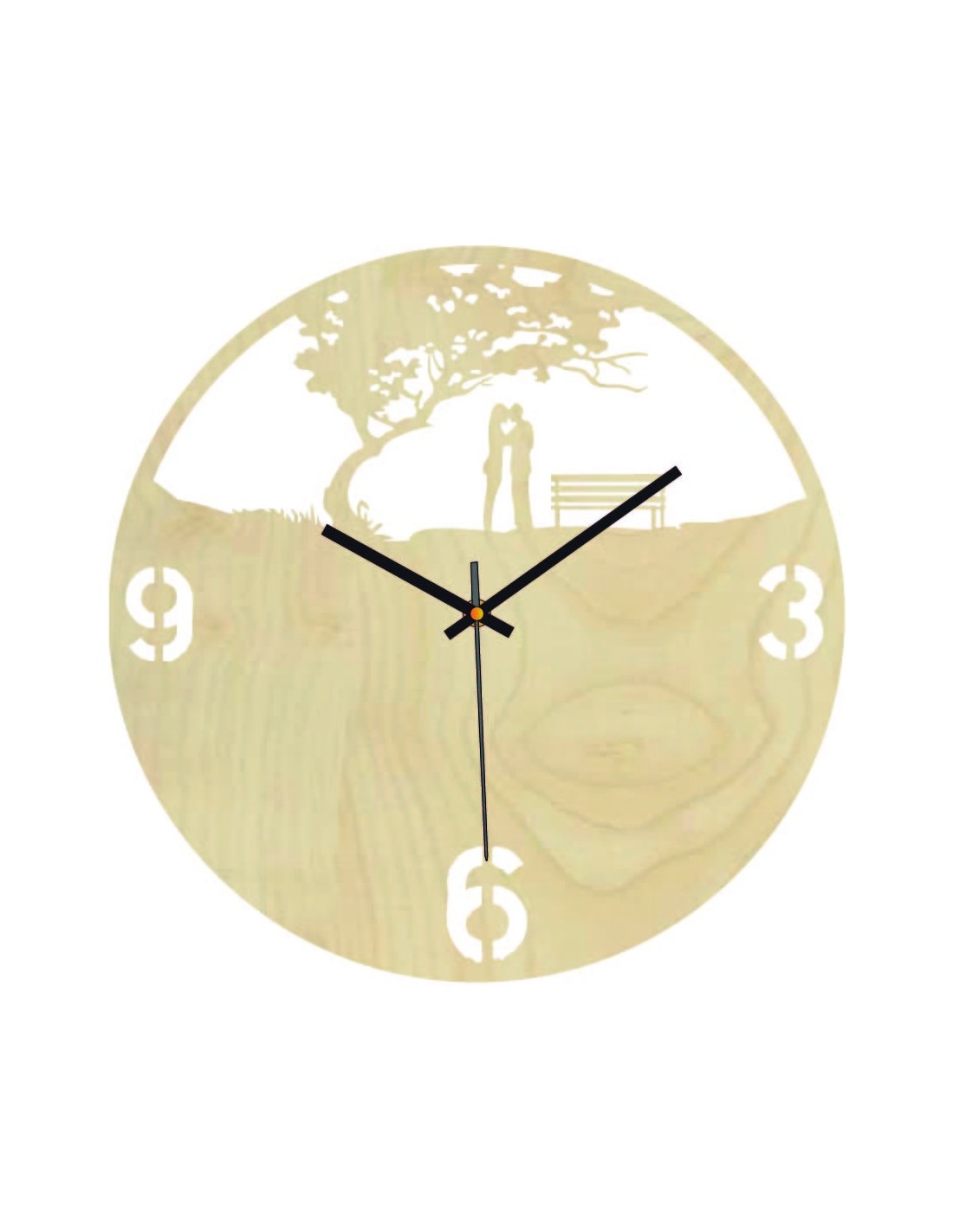 Ceas de perete din lemn dragoste în parc | DRAGOSTE