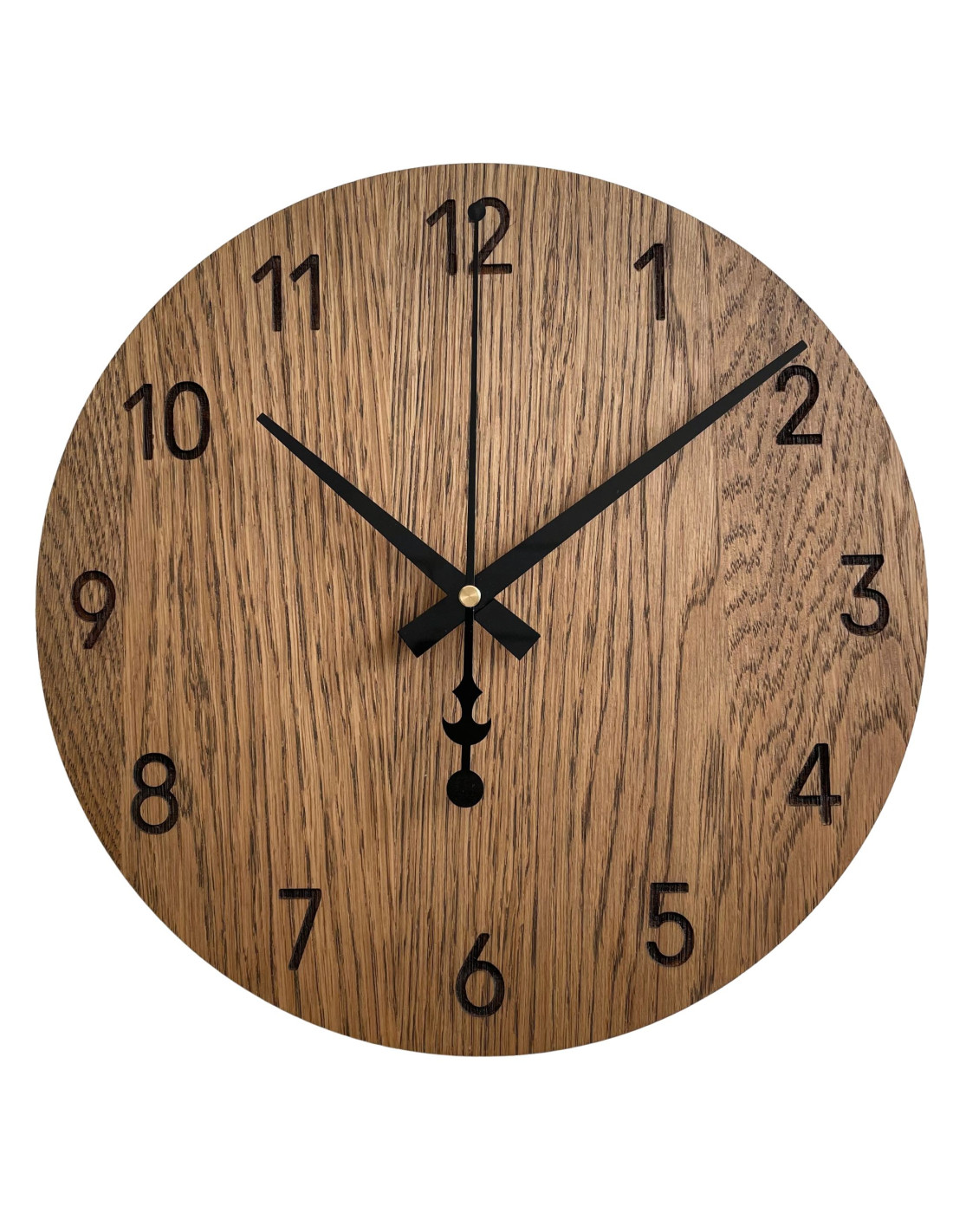 Acest ceas de perete din placaj de stejar, realizat manual, este un produs slovac unic, fiecare piesă având propriul caracter. Datorită structurii naturale și nuanței lemnului, fiecare piesă este ușor diferită, conferindu-i un aspect autentic și unic . Producția se face manual în Slovacia (UE), iar nuanța finală poate varia ușor în funcție de fibra naturală a lemnului.