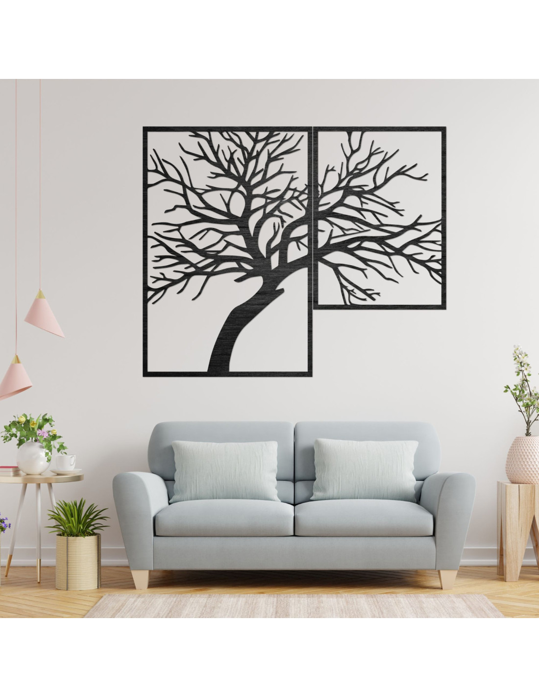 Tablou din lemn din două piese Arborele Vieții - o operă de artă unică ce combină frumusețea naturală, echilibrul și designul modern.