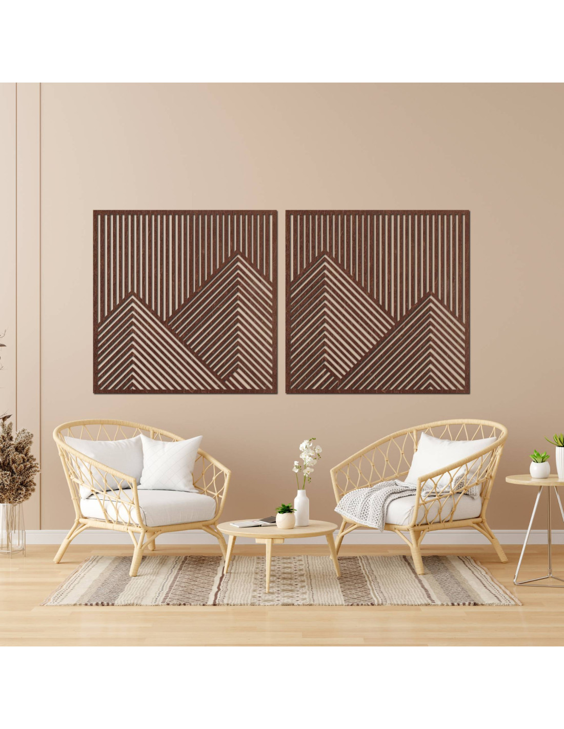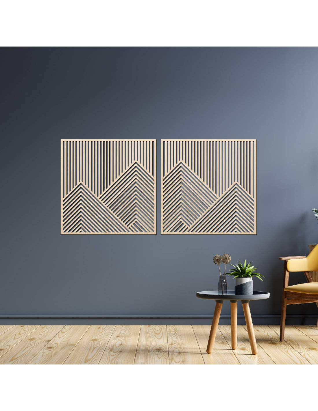 Decorațiune murală din lemn cu linii geometrice de munte - set de 2 piese