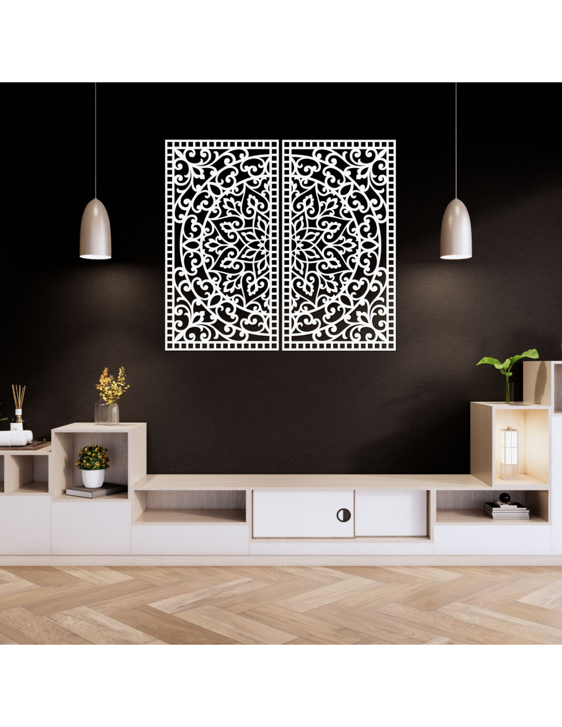 Pictură Mandala din lemn, 2 piese – Decorațiune murală sculptată - FLOUFER
