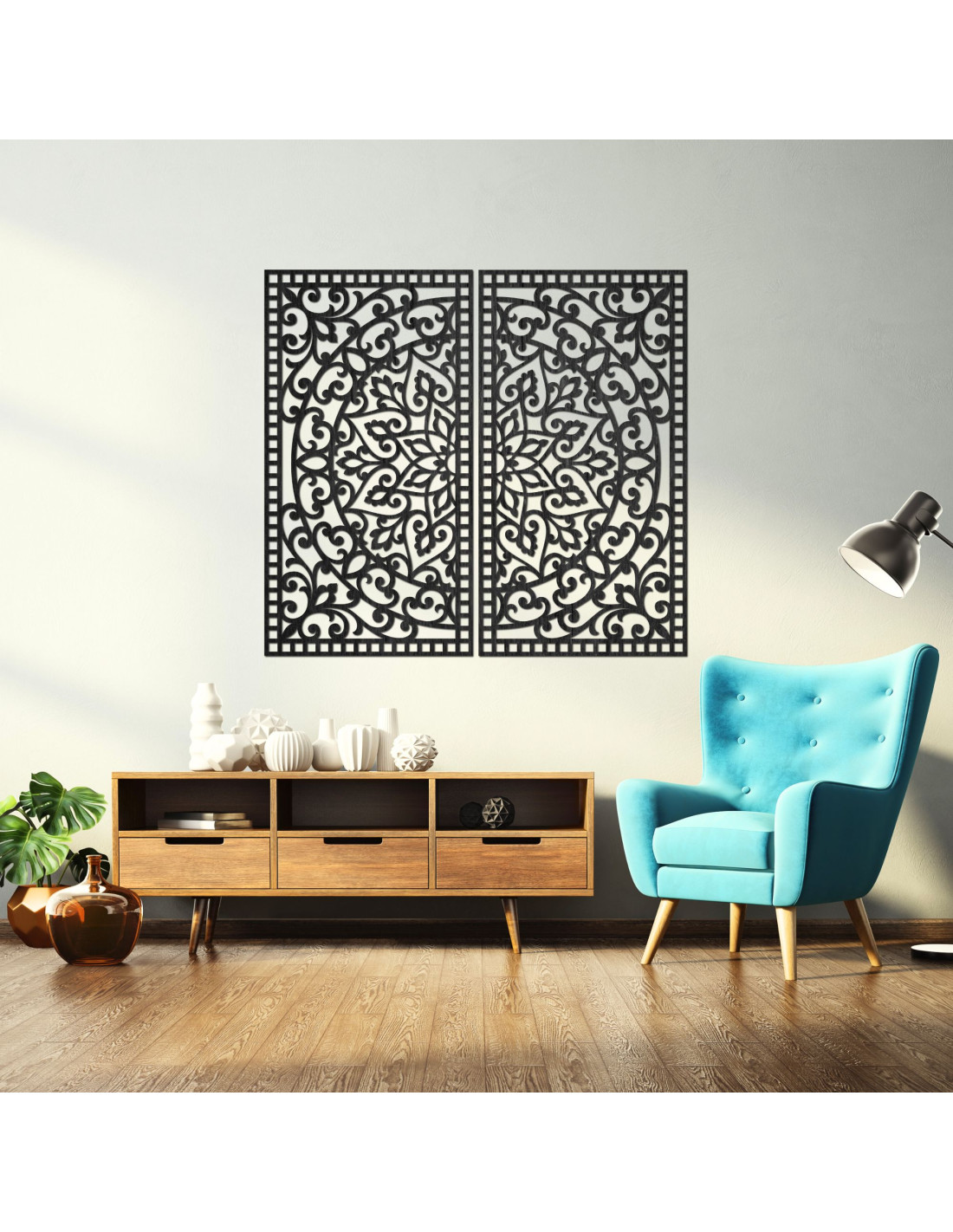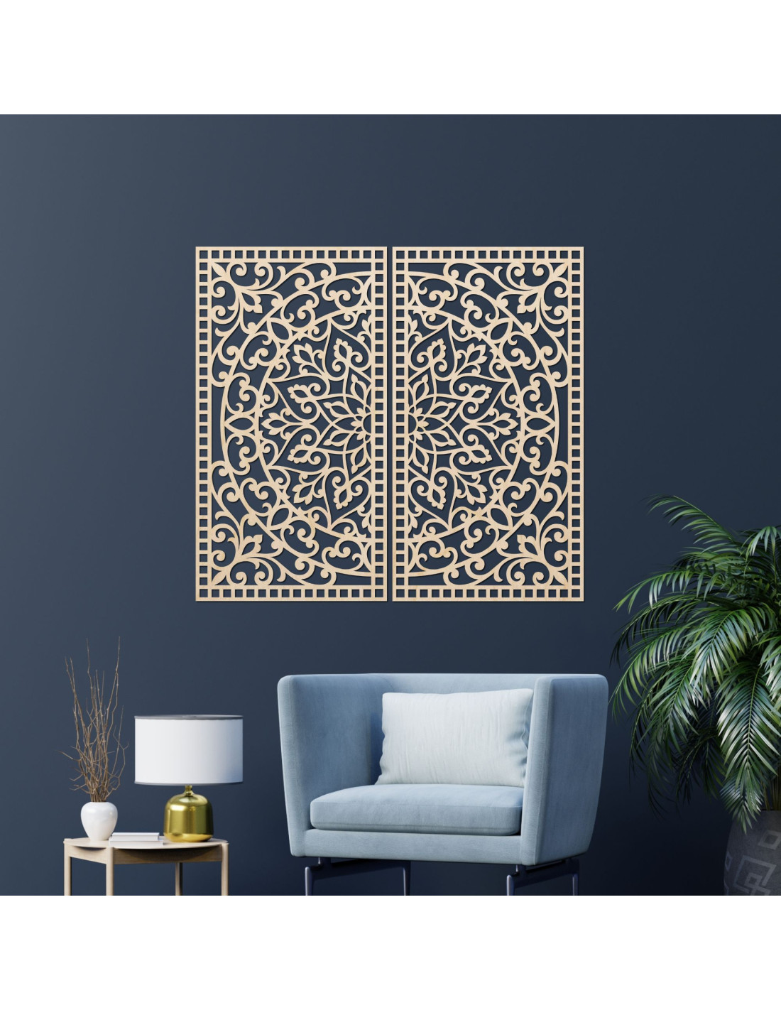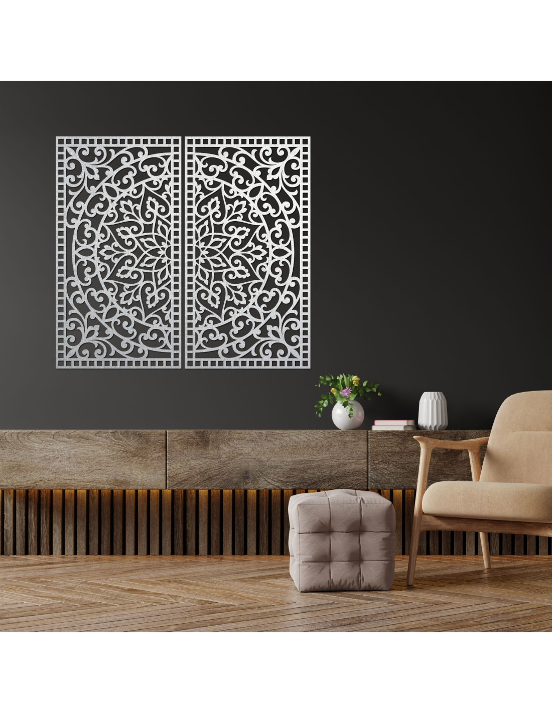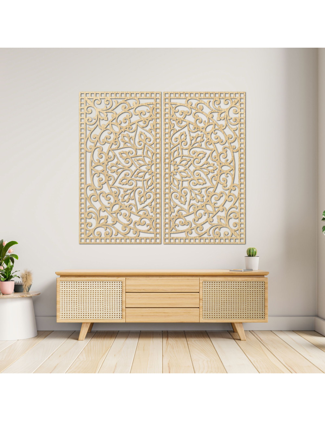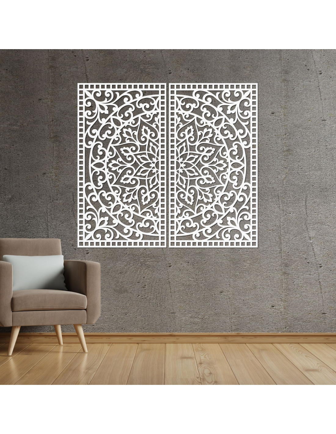Pictură Mandala din lemn, 2 piese – Decorațiune murală sculptată - FLOUFER