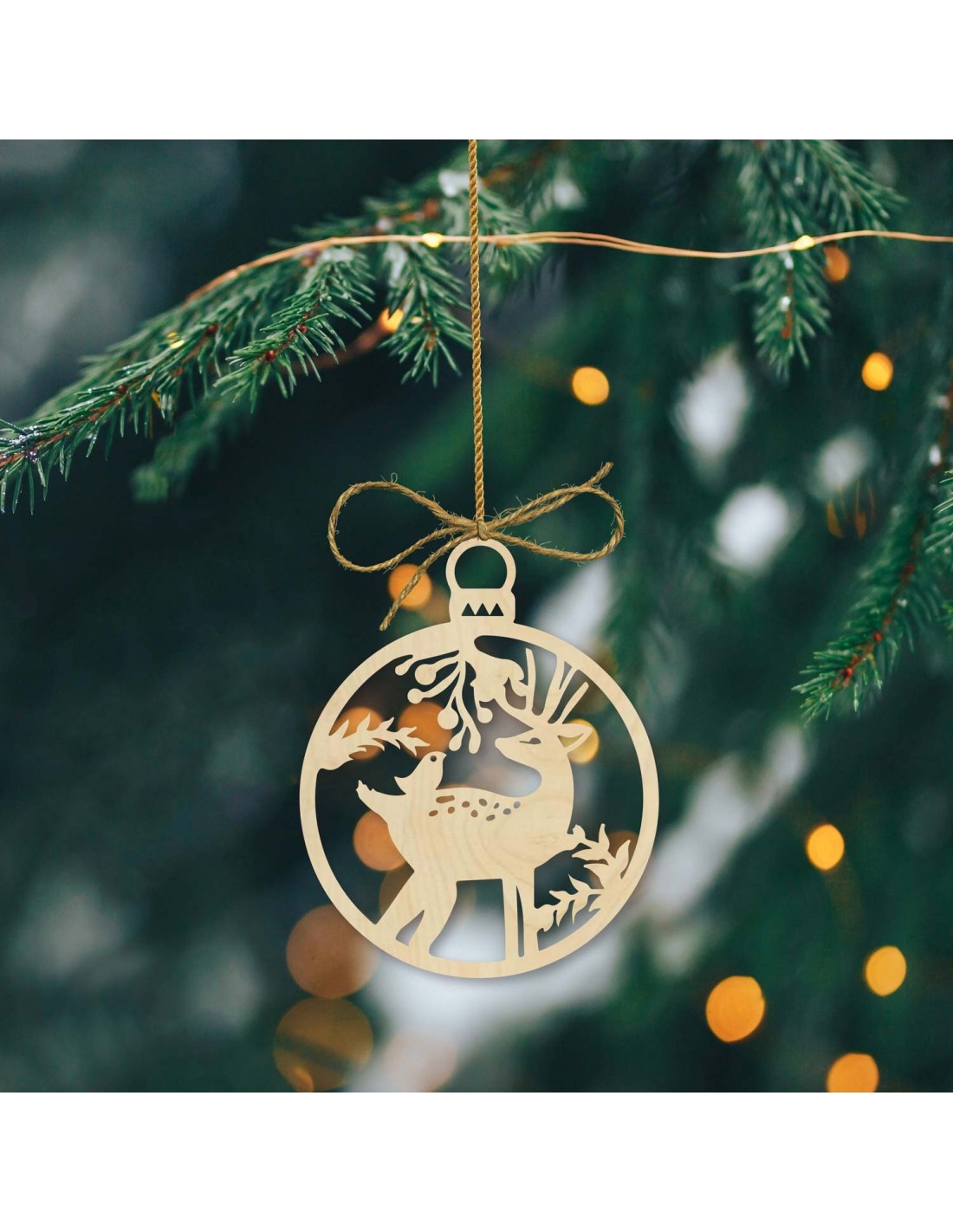Decorațiune de Crăciun din lemn cu cerbi, dimensiune: 79x90 mm PR0009