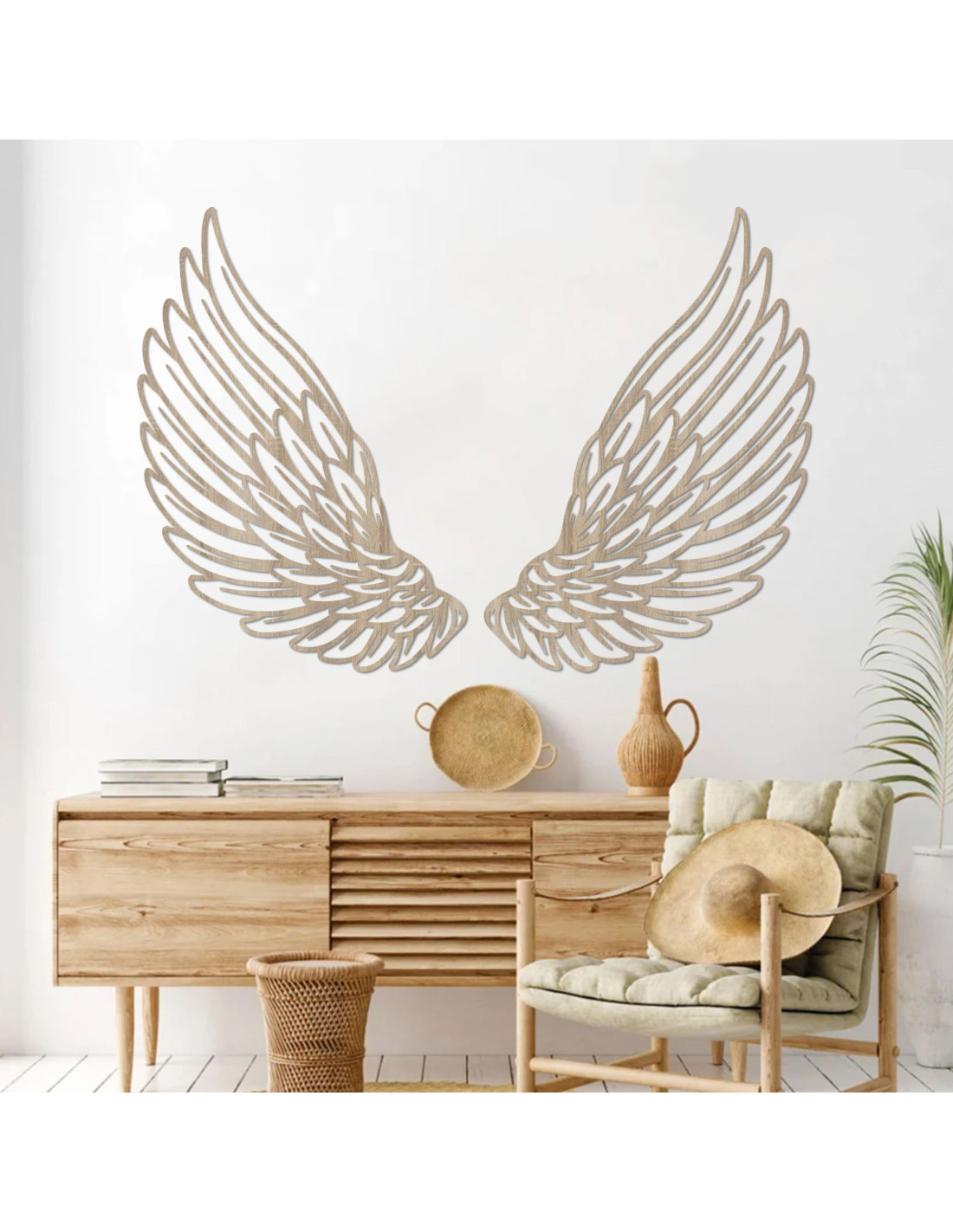 Această decorațiune murală din lemn în formă de aripi de înger este un simbol al libertății, protecției și ușurinței.