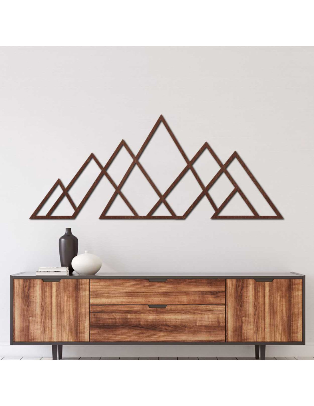 Pictură geometrică cu munte - decor mural din lemn în stil modern pentru iubitorii de natură și minimalism.