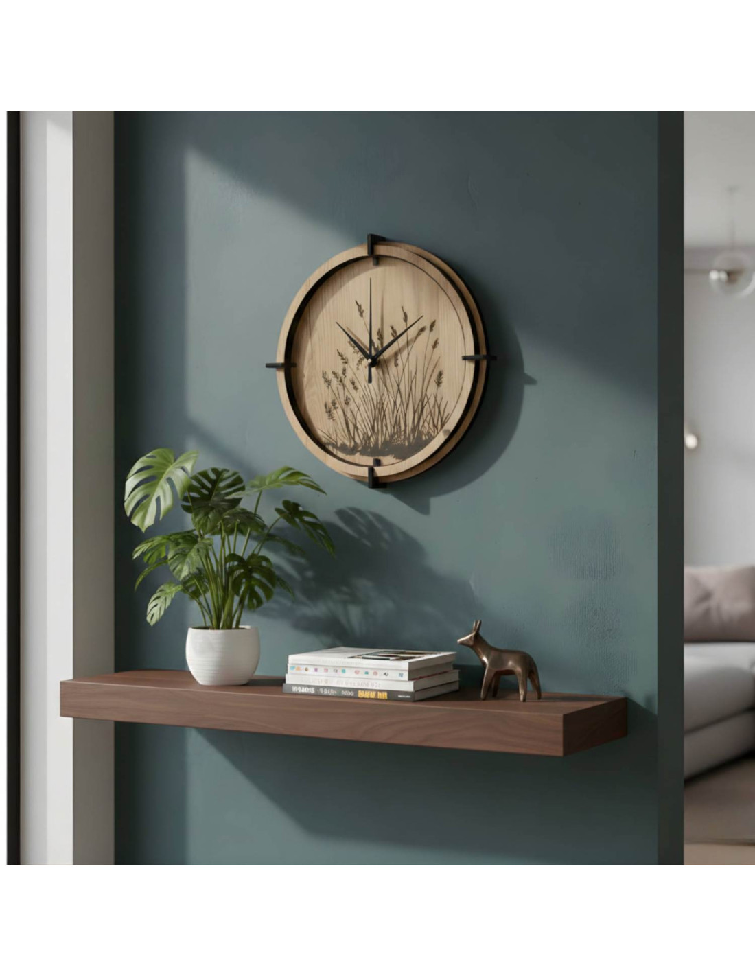 Ceas de perete modern din lemn , cu un motiv gravat fin cu iarbă de pajiște, aduce pace, armonie și eleganță naturală interiorului. Mecanismul silențios cu cuarț asigură o funcționare precisă și silențioasă, ideal pentru living, dormitor și birou . Fabricat din placă HDF de înaltă calitate , cu accent pe prelucrarea precisă și agățarea ușoară, fără găurire. Producția locală slovacă face din fiecare piesă un accesoriu de design unic . Alegeți dimensiunea potrivită și oferiți interiorului dvs. o notă de natură.