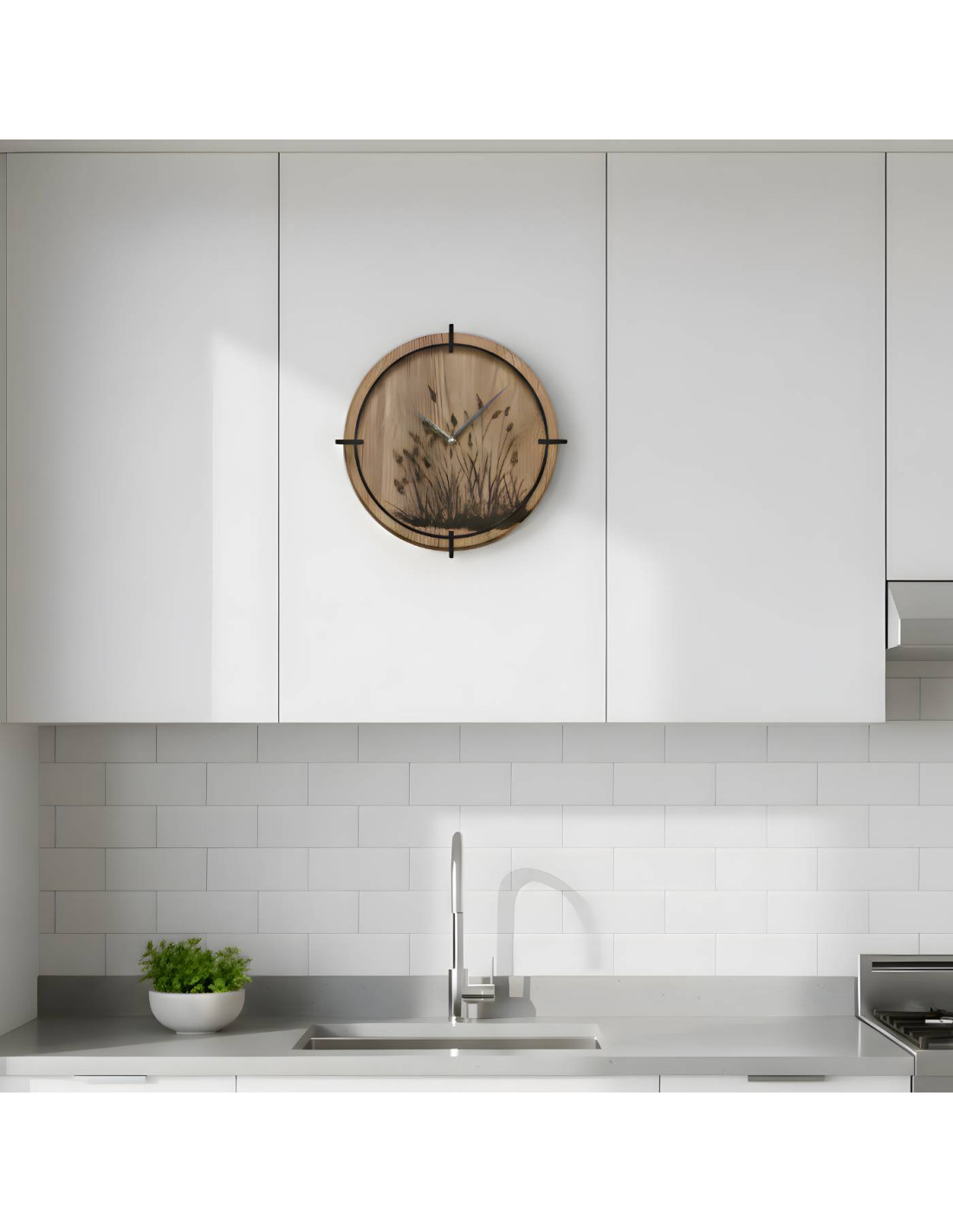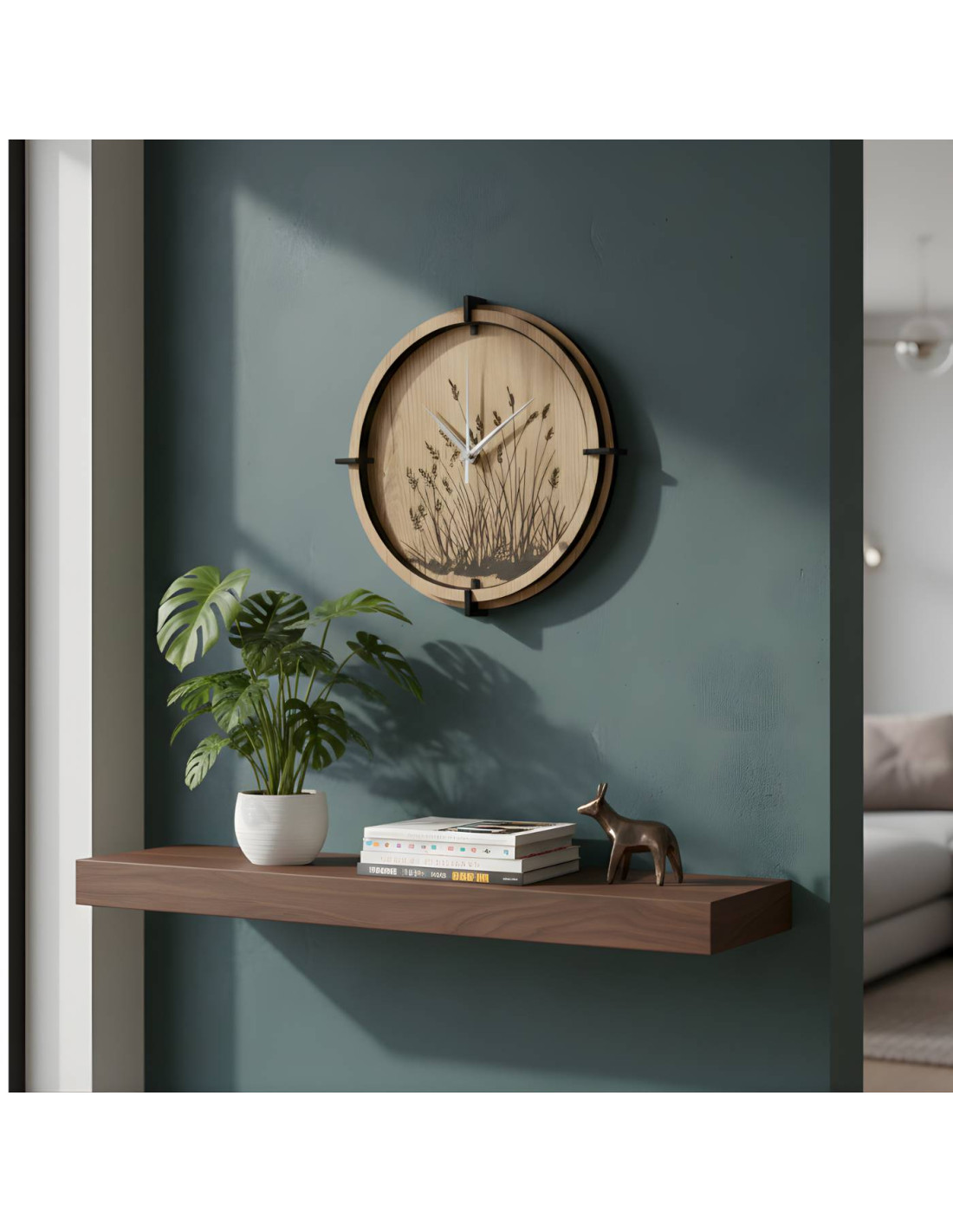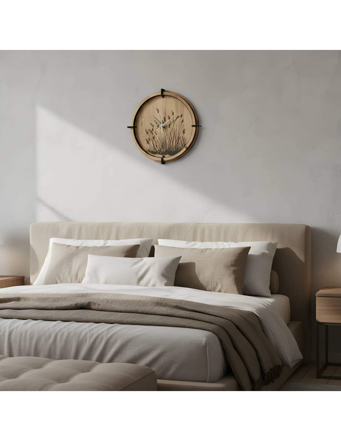 Ceas de perete modern din lemn , cu un motiv gravat fin cu iarbă de pajiște, aduce pace, armonie și eleganță naturală interiorului. Mecanismul silențios cu cuarț asigură o funcționare precisă și silențioasă, ideal pentru living, dormitor și birou . Fabricat din placă HDF de înaltă calitate , cu accent pe prelucrarea precisă și agățarea ușoară, fără găurire. Producția locală slovacă face din fiecare piesă un accesoriu de design unic . Alegeți dimensiunea potrivită și oferiți interiorului dvs. o notă de natură.