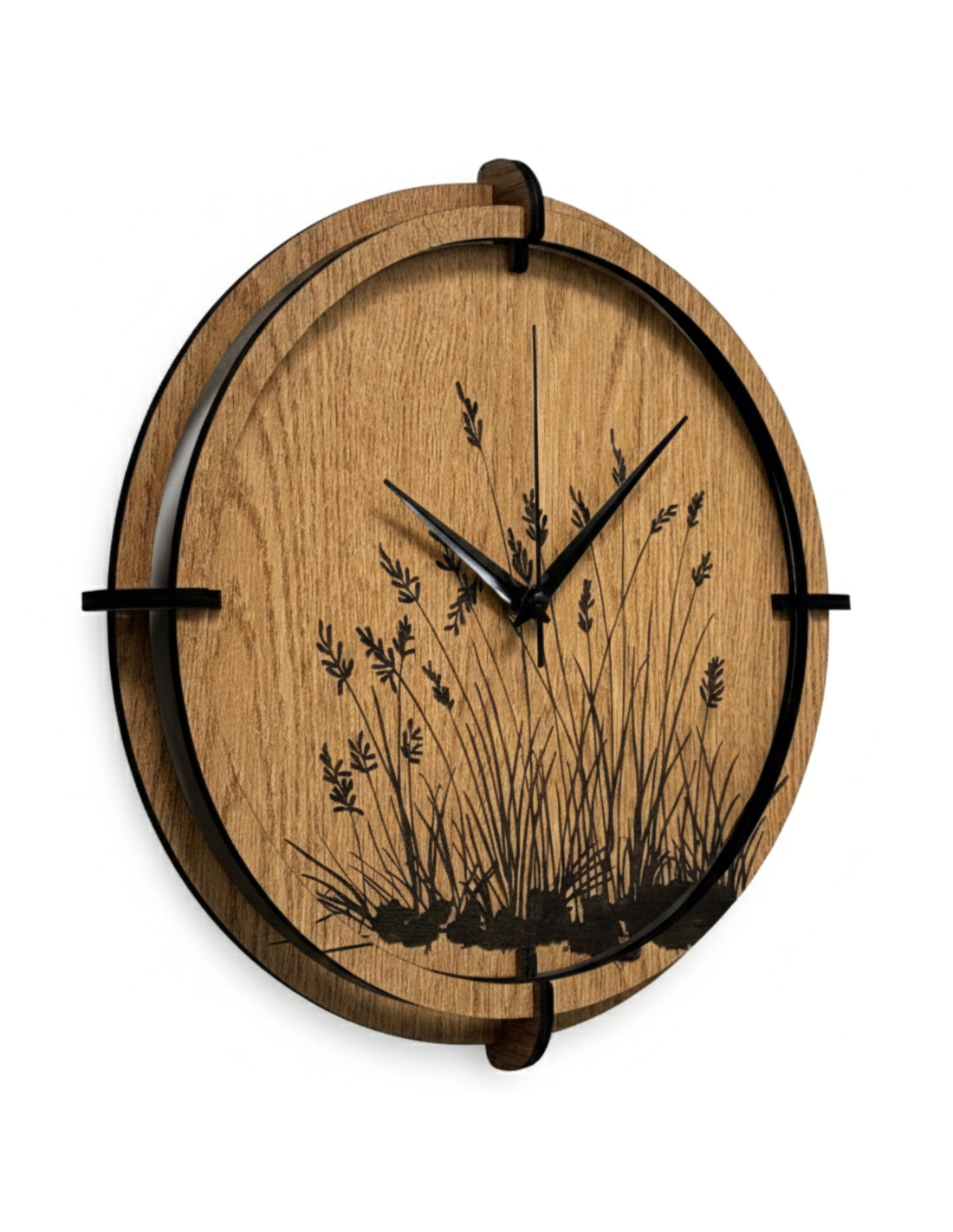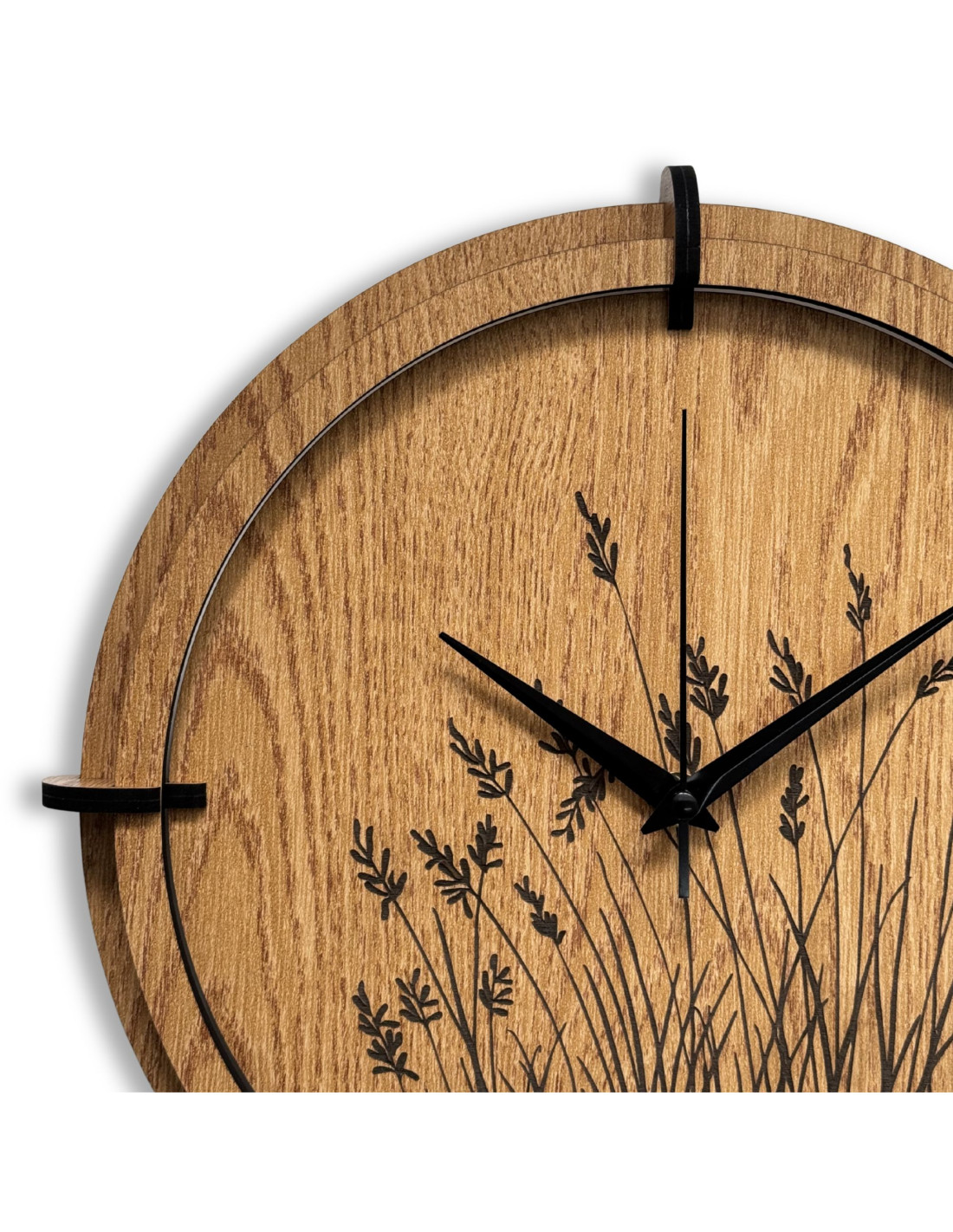 Ceas de perete din lemn cu iarbă de pajiște - Stejar