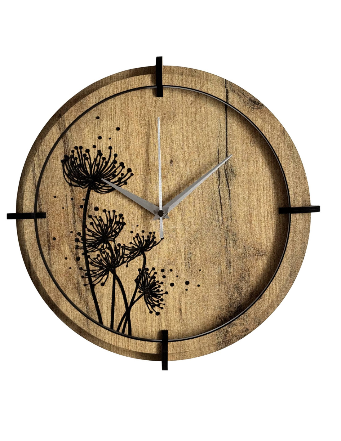 Acest ceas de perete realizat din lemn HDF combină materialul modern cu măiestria autentică.