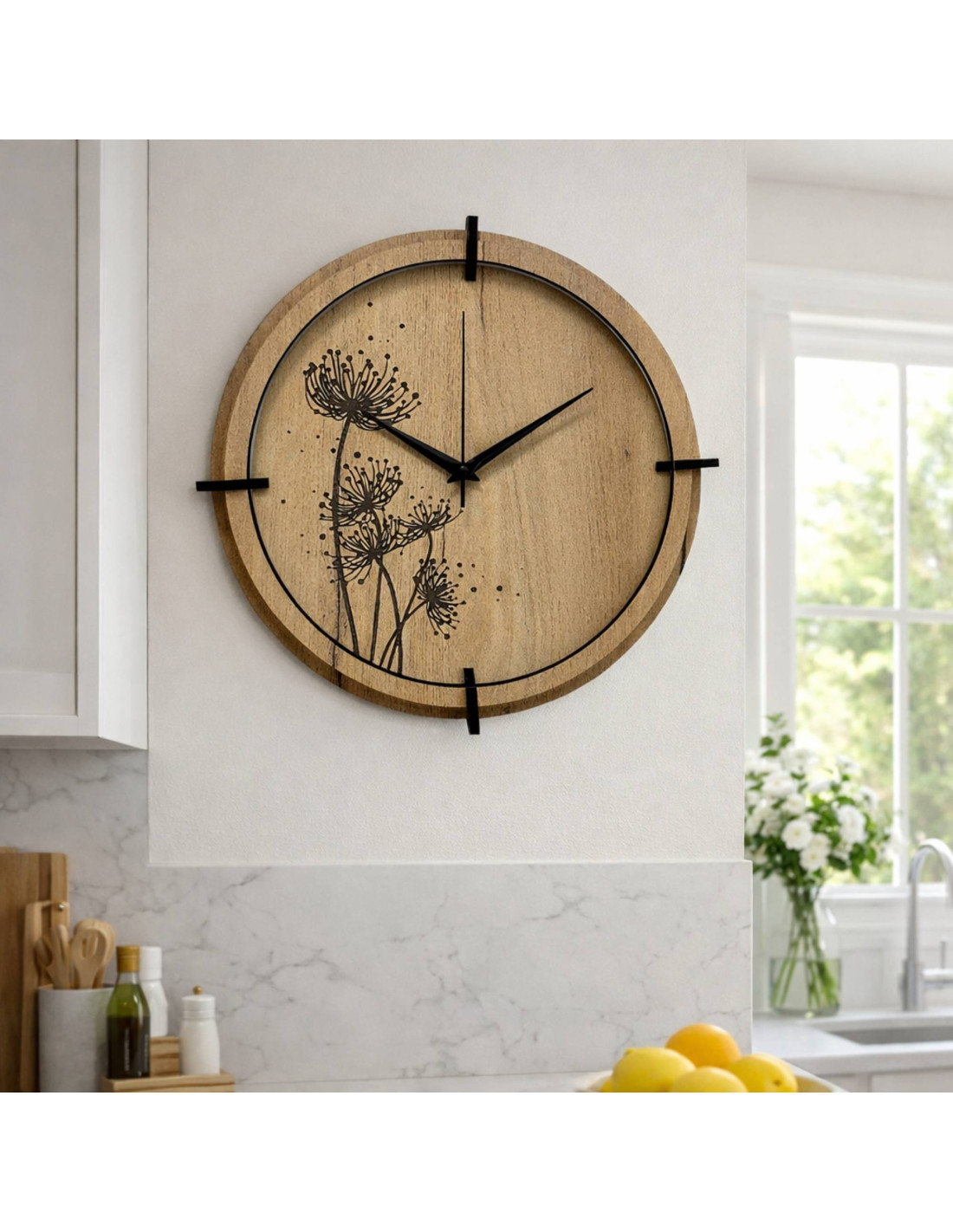 Ceas modern din lemn, Dandelion - PAMPA