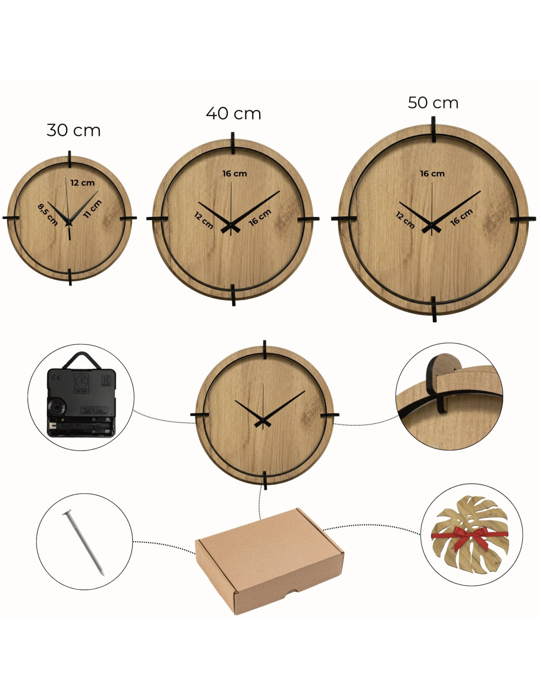 - Diametru ceas: alegeți între 30 cm, 40 cm sau 50 cm