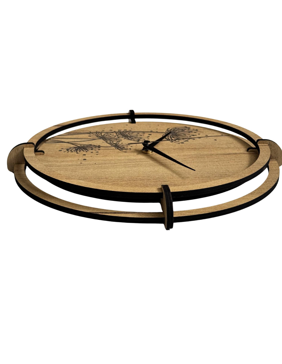 Ceas de design din placă HDF, cu funcționare silențioasă și motiv cu pajiște.
