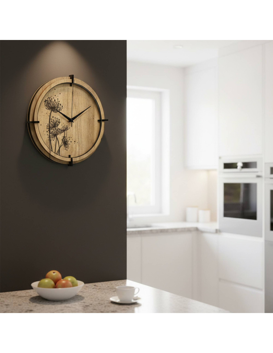 Înviorează-ți interiorul cu acest ceas de design care combină textura caldă a lemnului cu un stil minimalist modern.