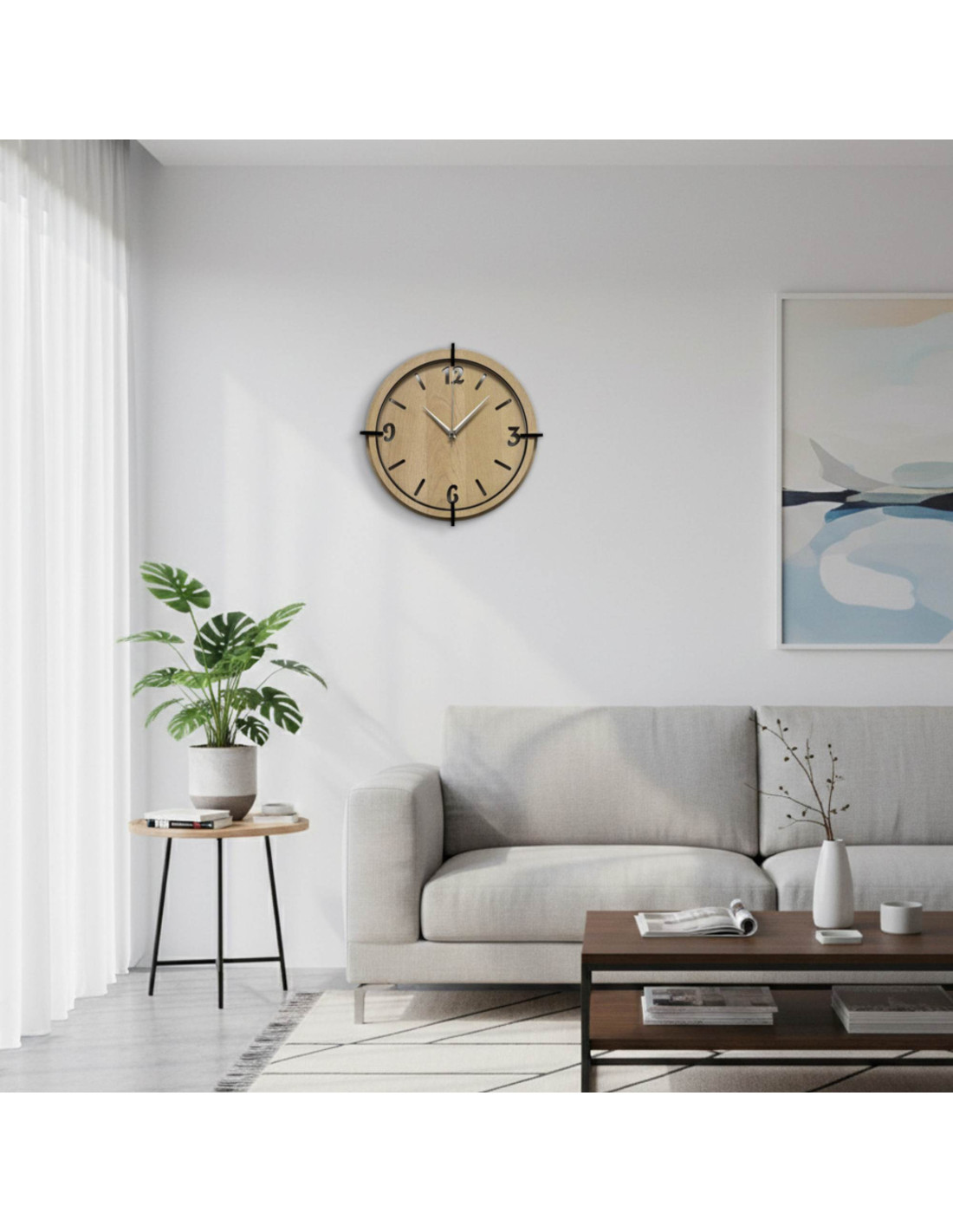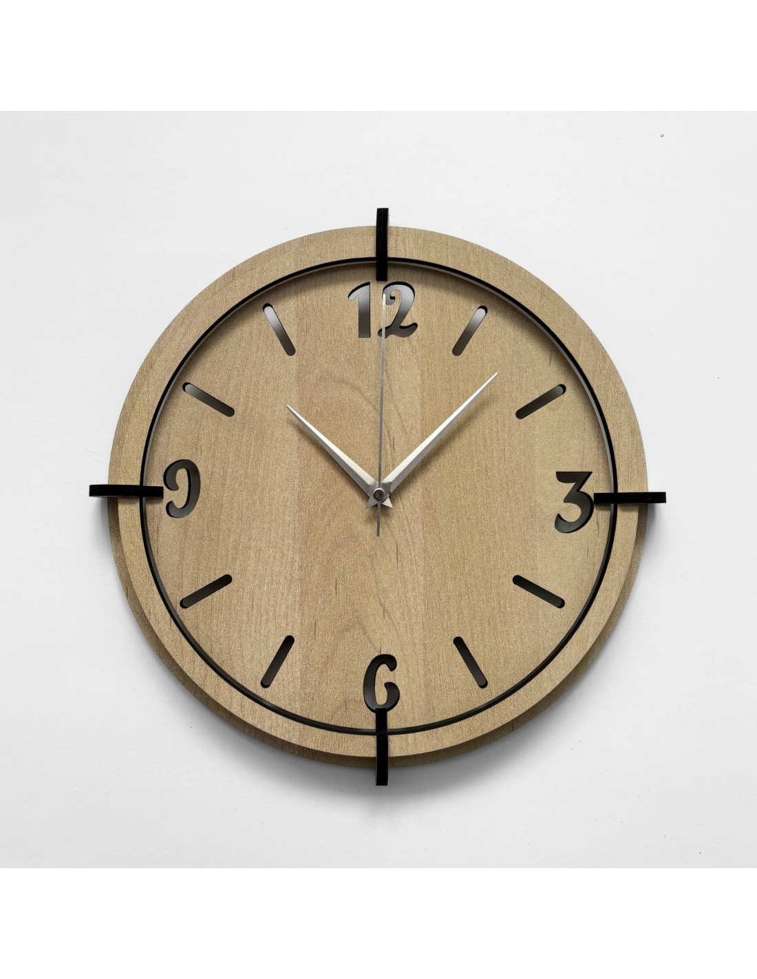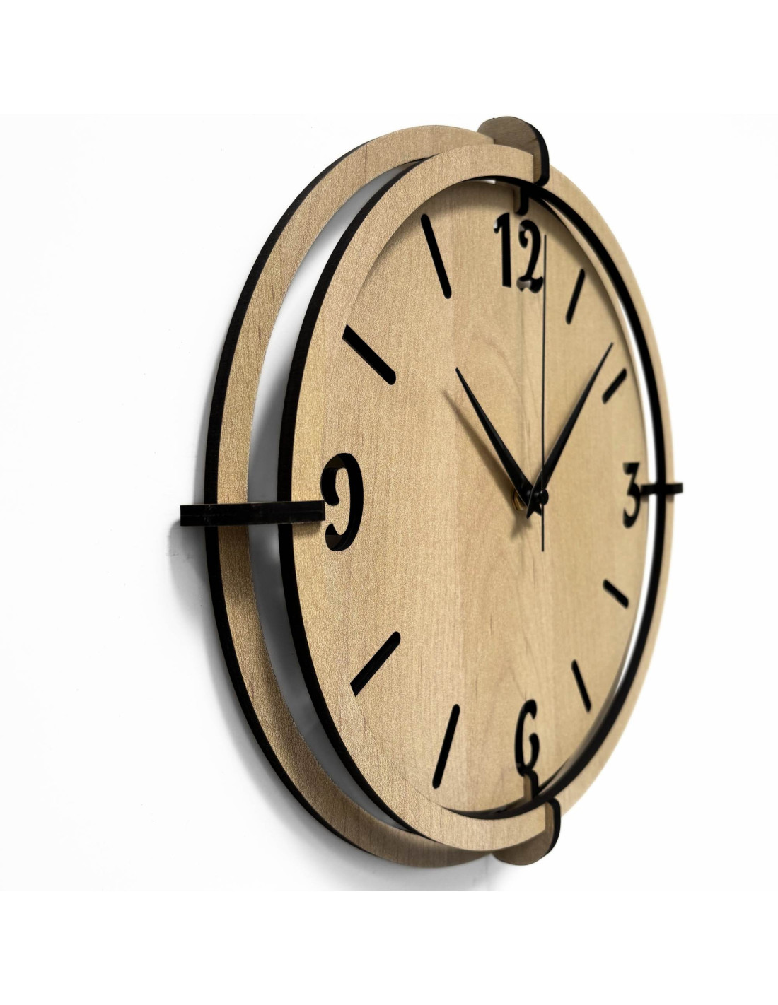 Acest ceas de perete realizat din lemn HDF combină materialul modern cu măiestria autentică.