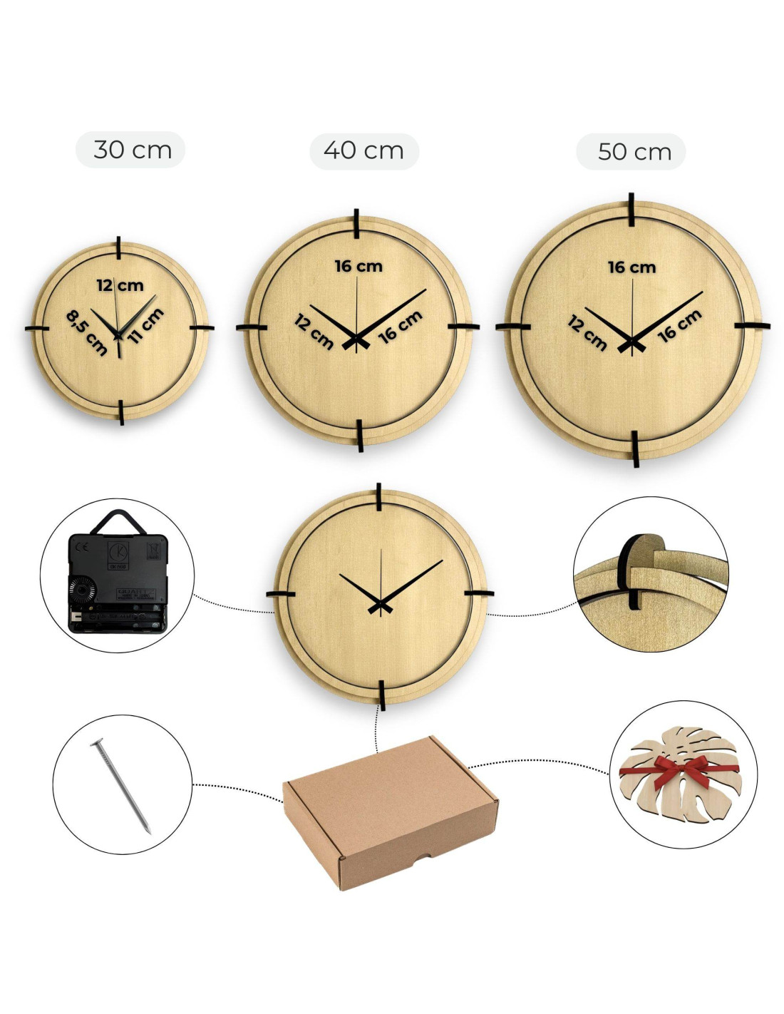 - Diametru ceas: alegeți între 30 cm, 40 cm sau 50 cm