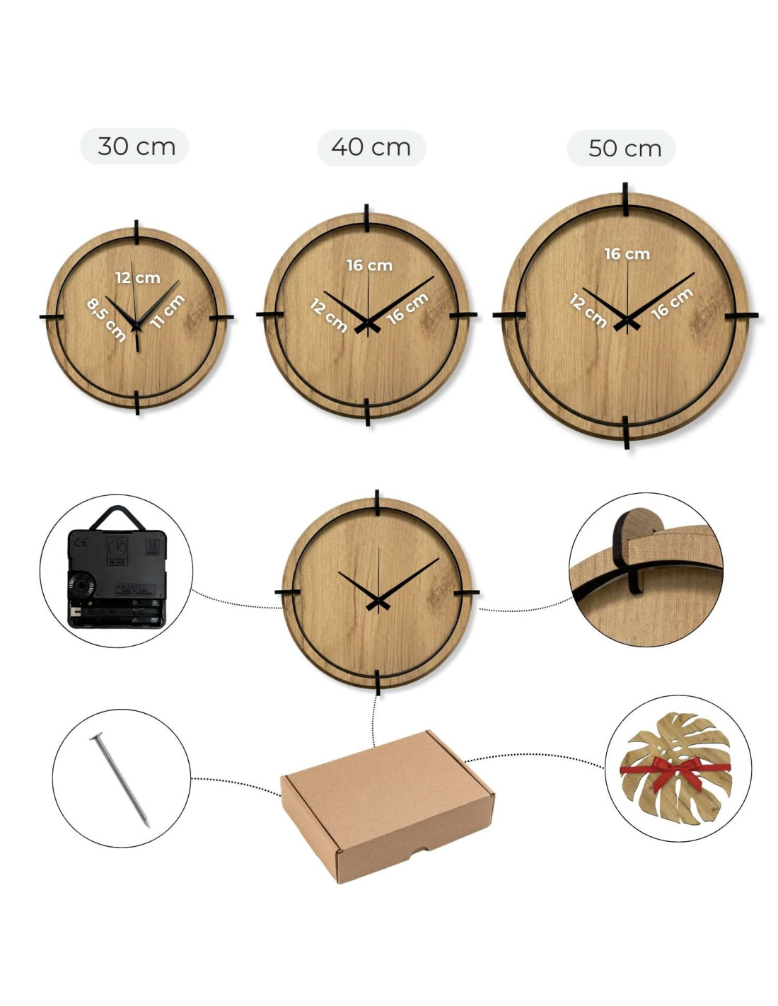- Diametru ceas: alegeți între 30 cm, 40 cm sau 50 cm