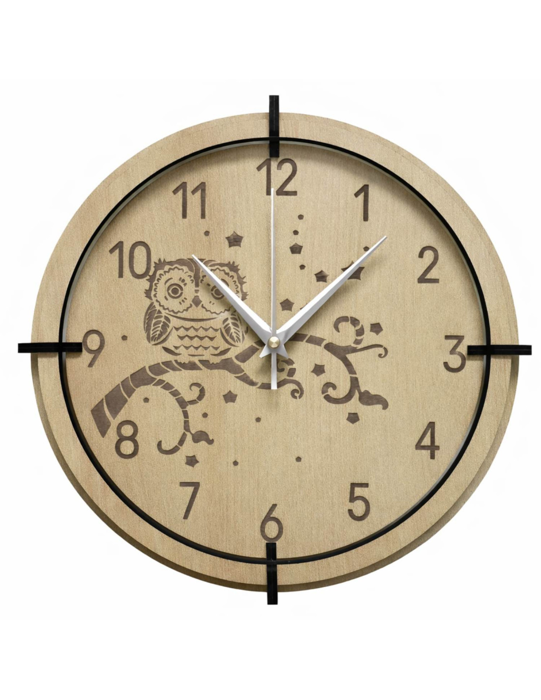 Ceas de perete modern din lemn de arțar, cu un motiv delicat gravat cu bufniță, pentru copii, aduce pace și armonie în interior.