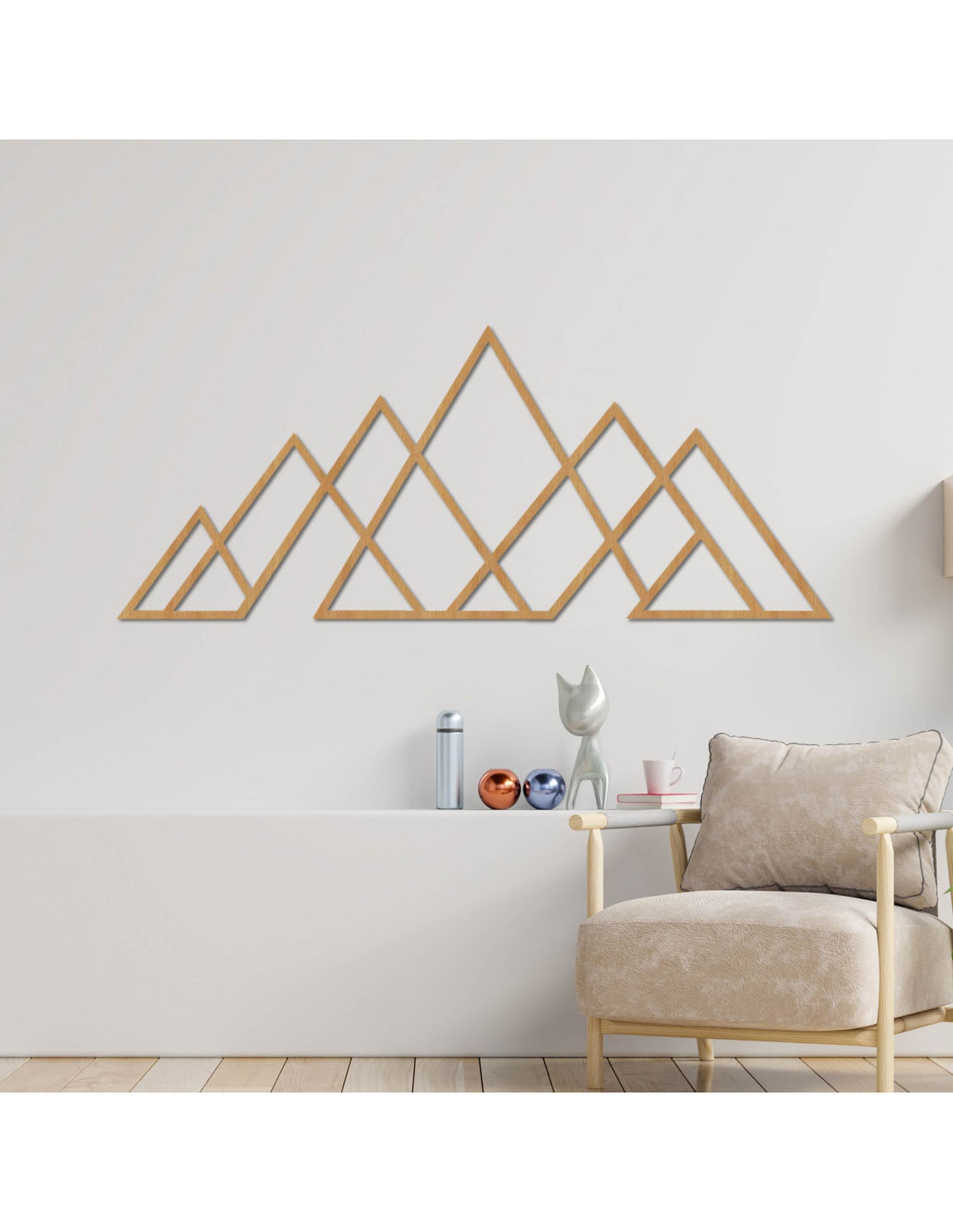 Decorațiune murală modernă cu motiv montan în stil geometric minimalist .