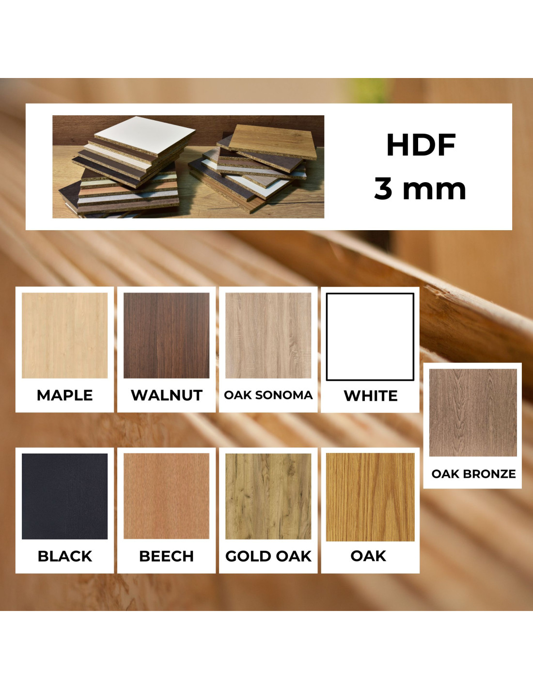 • Placajul este fabricat din straturi subțiri de lemn de plop / HDF este produs prin presarea diverselor fibre de lemn.