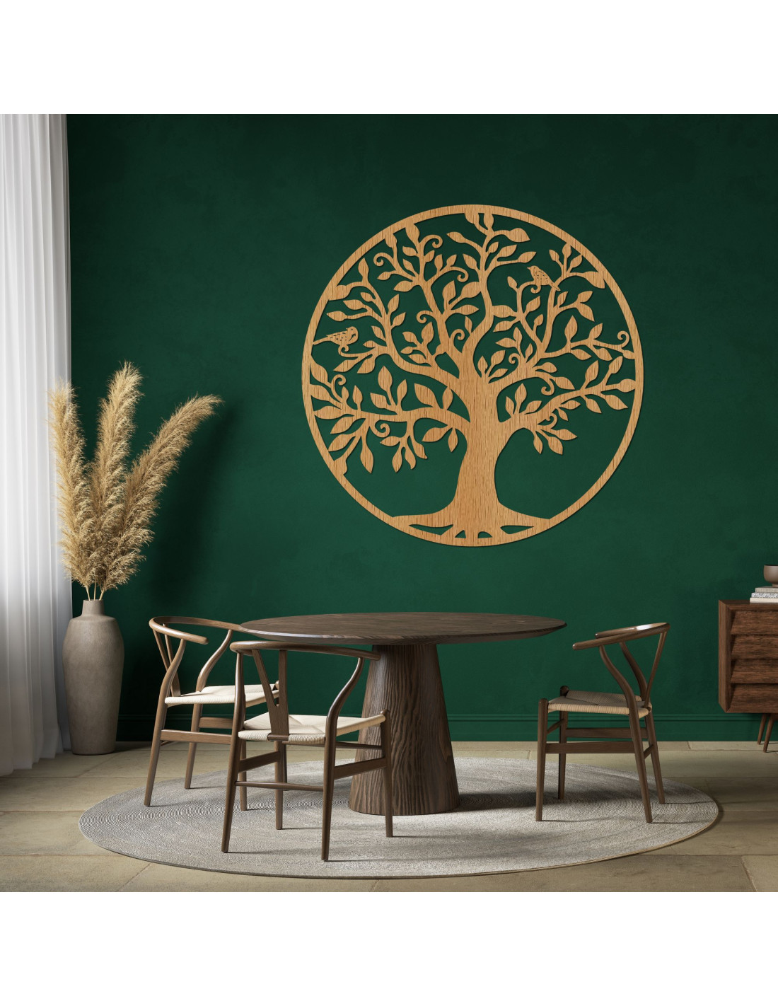 Imaginea simbolică a arborelui vieții, într-un design din lemn, adaugă o notă de natură și echilibru spiritual casei. Aceasta întruchipează legătura dintre generații, puterea și dezvoltarea constantă. Designul detaliat și manopera de înaltă calitate o fac un plus unic pentru orice casă sau un cadou minunat pentru cei dragi .