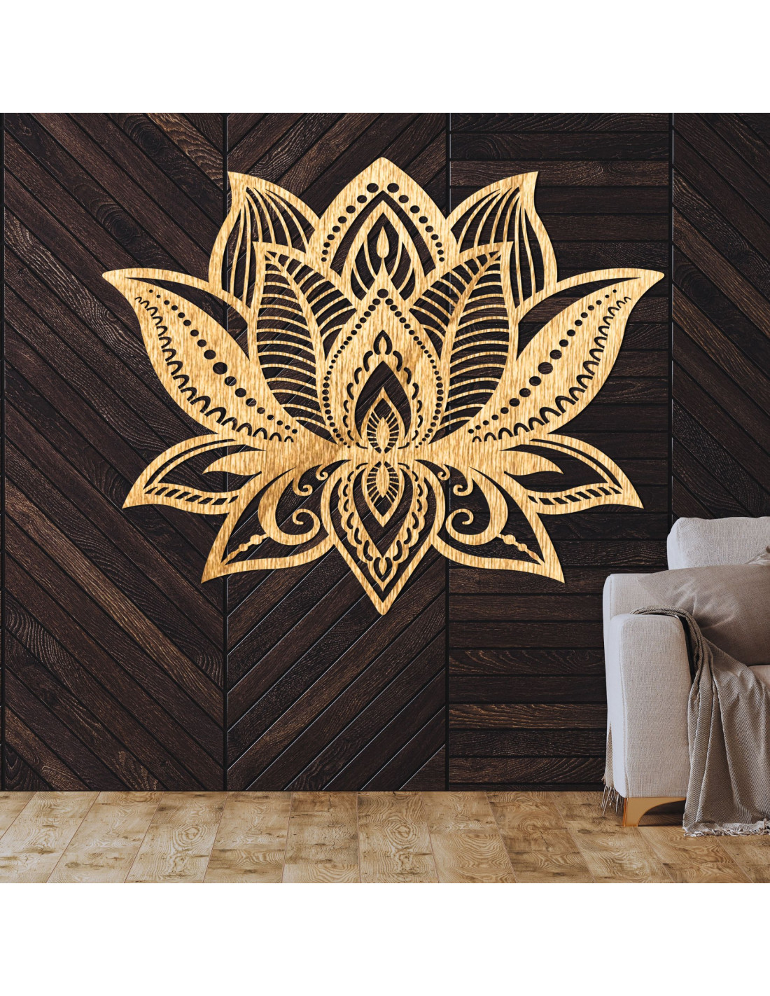 Pictura murală din lemn - Floarea de Lotus este mai mult decât un simplu accesoriu de design. Reprezintă o combinație armonioasă între natură, estetică și pace spirituală, transformând interiorul într-un loc al echilibrului și inspirației.