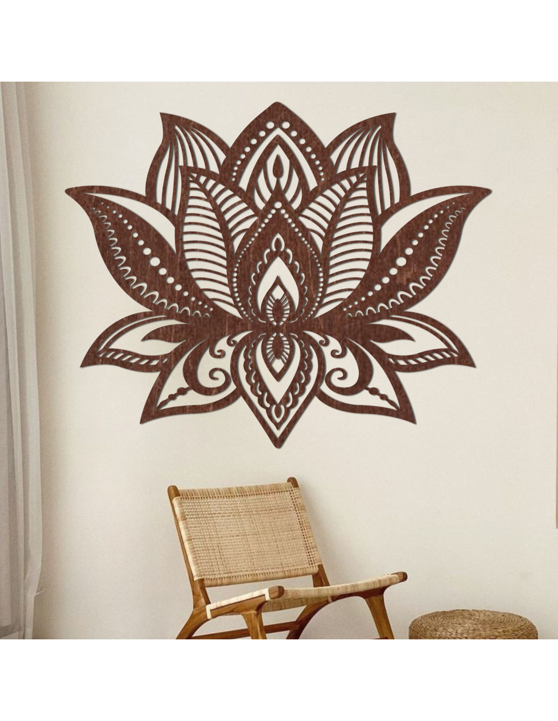 Floarea de lotus a fost un simbol al purității, renașterii și păcii interioare încă din cele mai vechi timpuri. Această decorațiune murală din lemn este concepută pentru a aduce echilibru, pace și o lumină blândă în casa ta, umplând spațiul cu energie pozitivă.