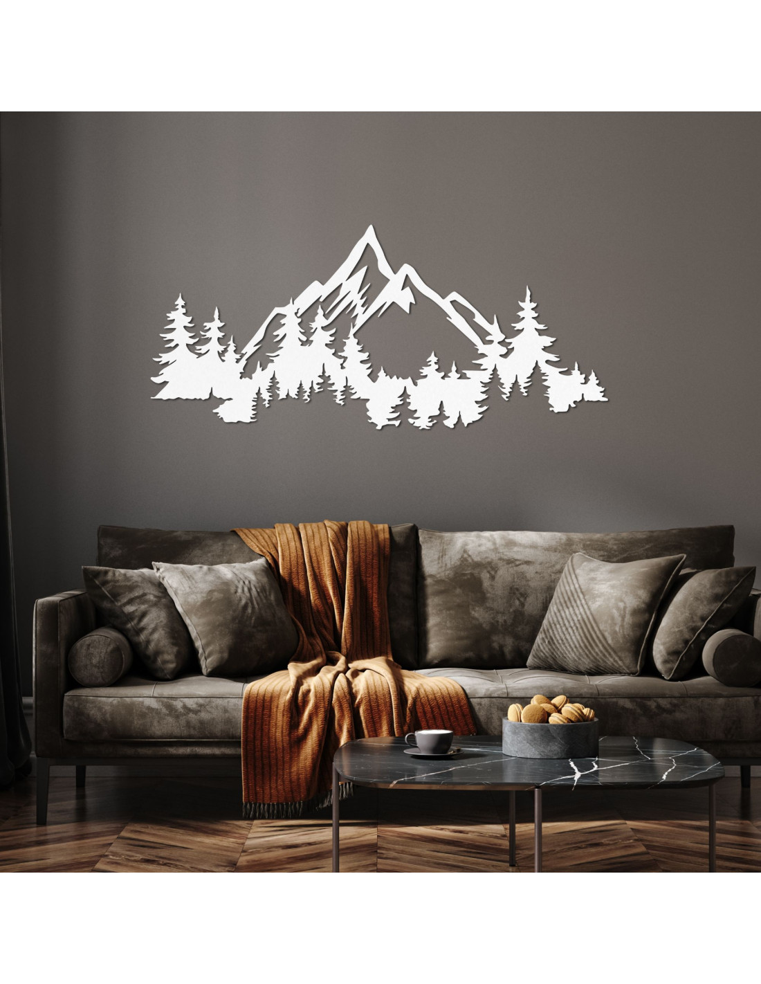 Decorarea cu motiv de munți maiestuoși și păduri dese aduce un sentiment de pace și armonie naturală în interior.