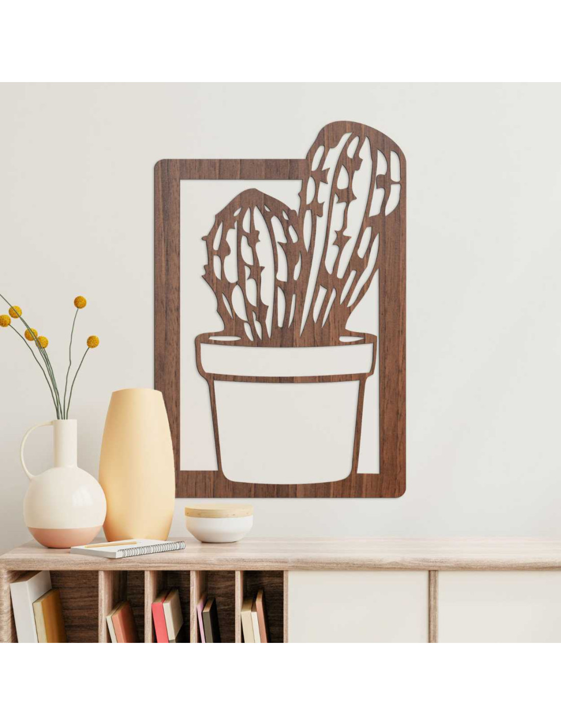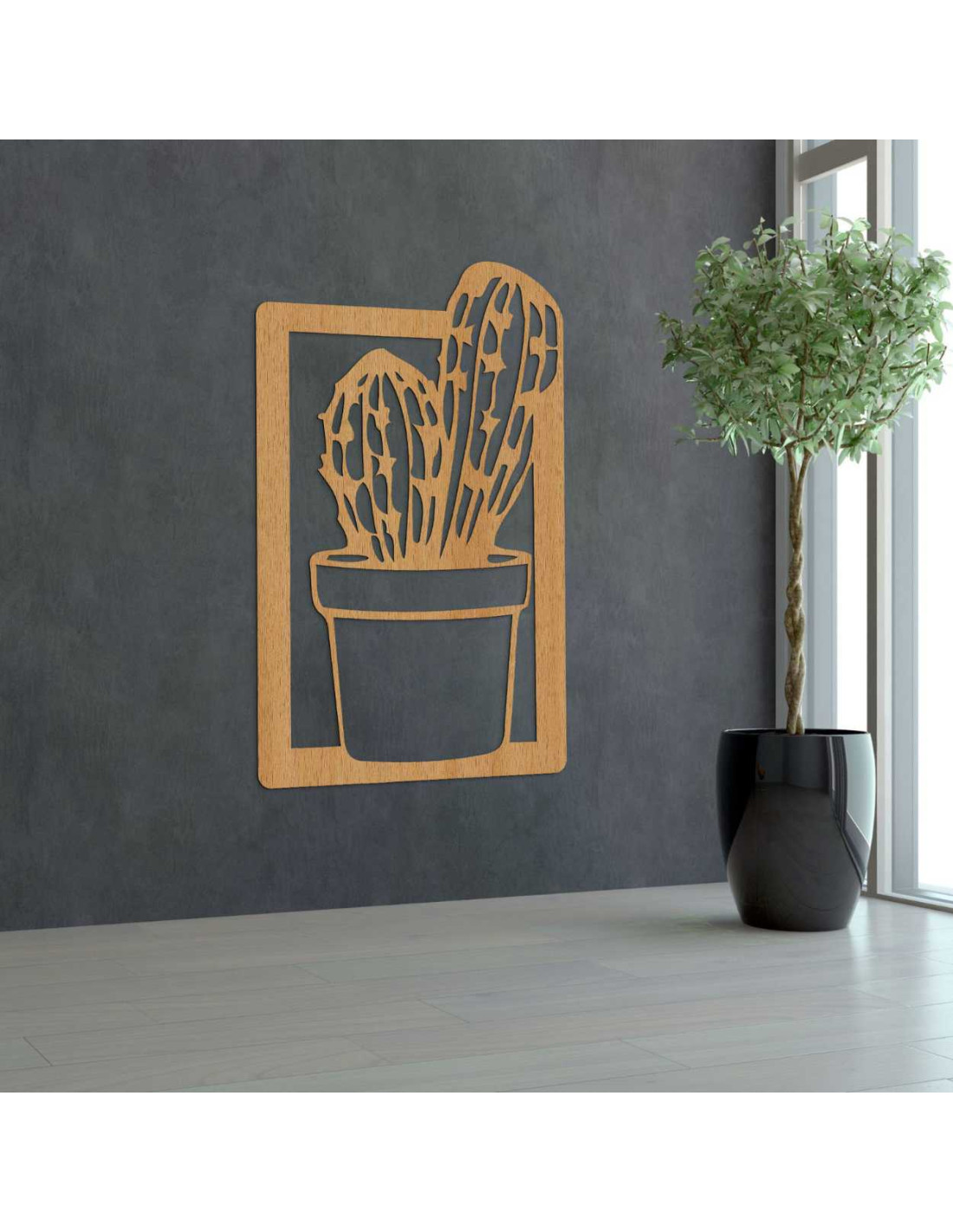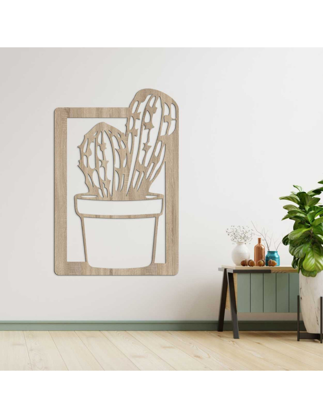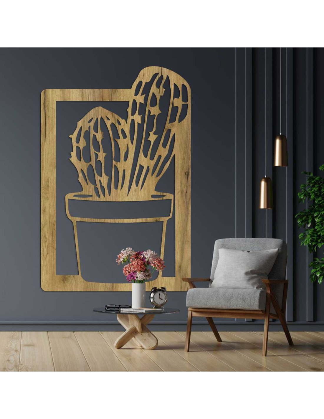 O pictură modernă cu cactus din lemn aduce farmecul naturii în interior într-o formă minimalistă.