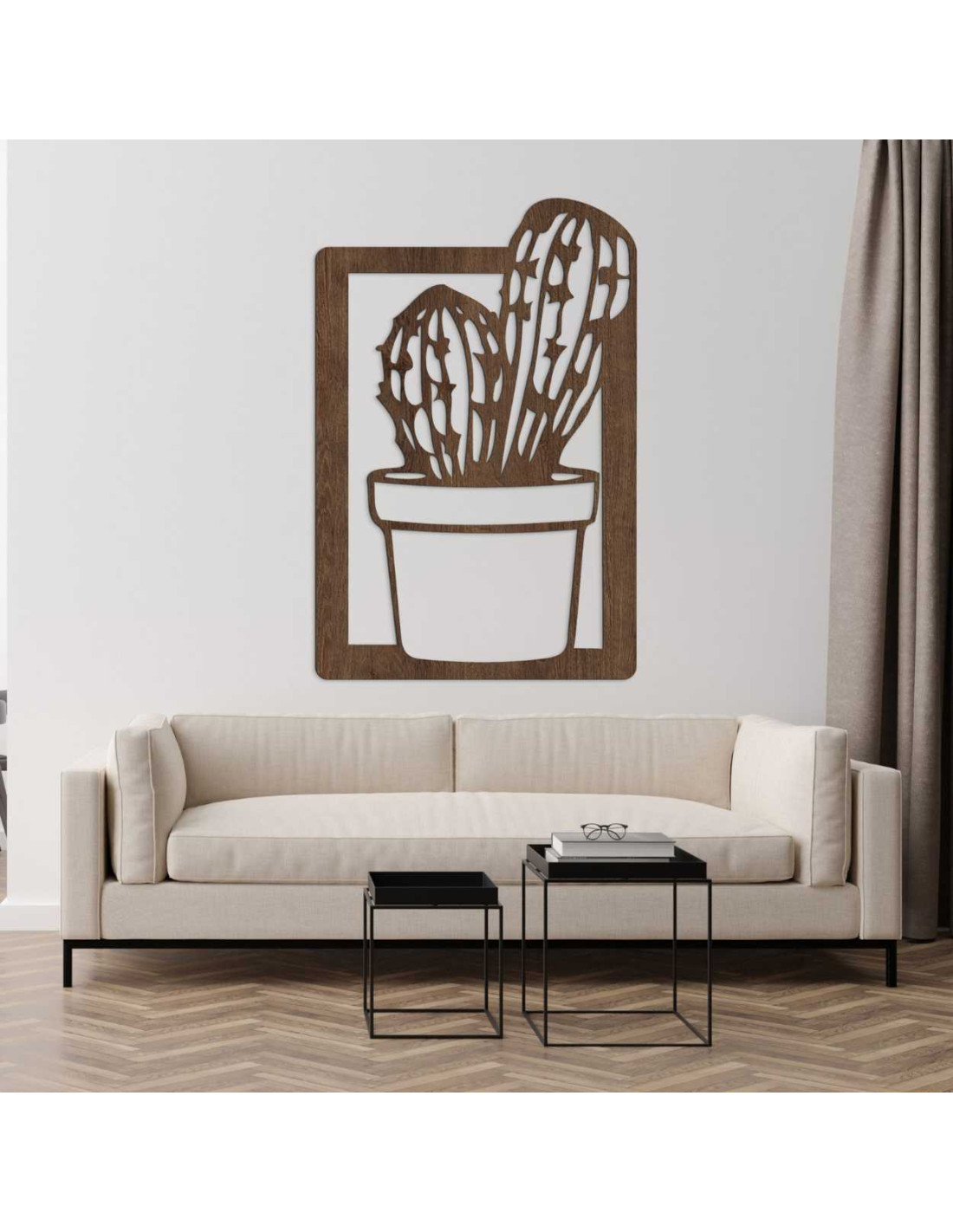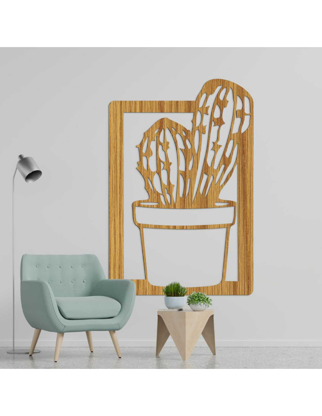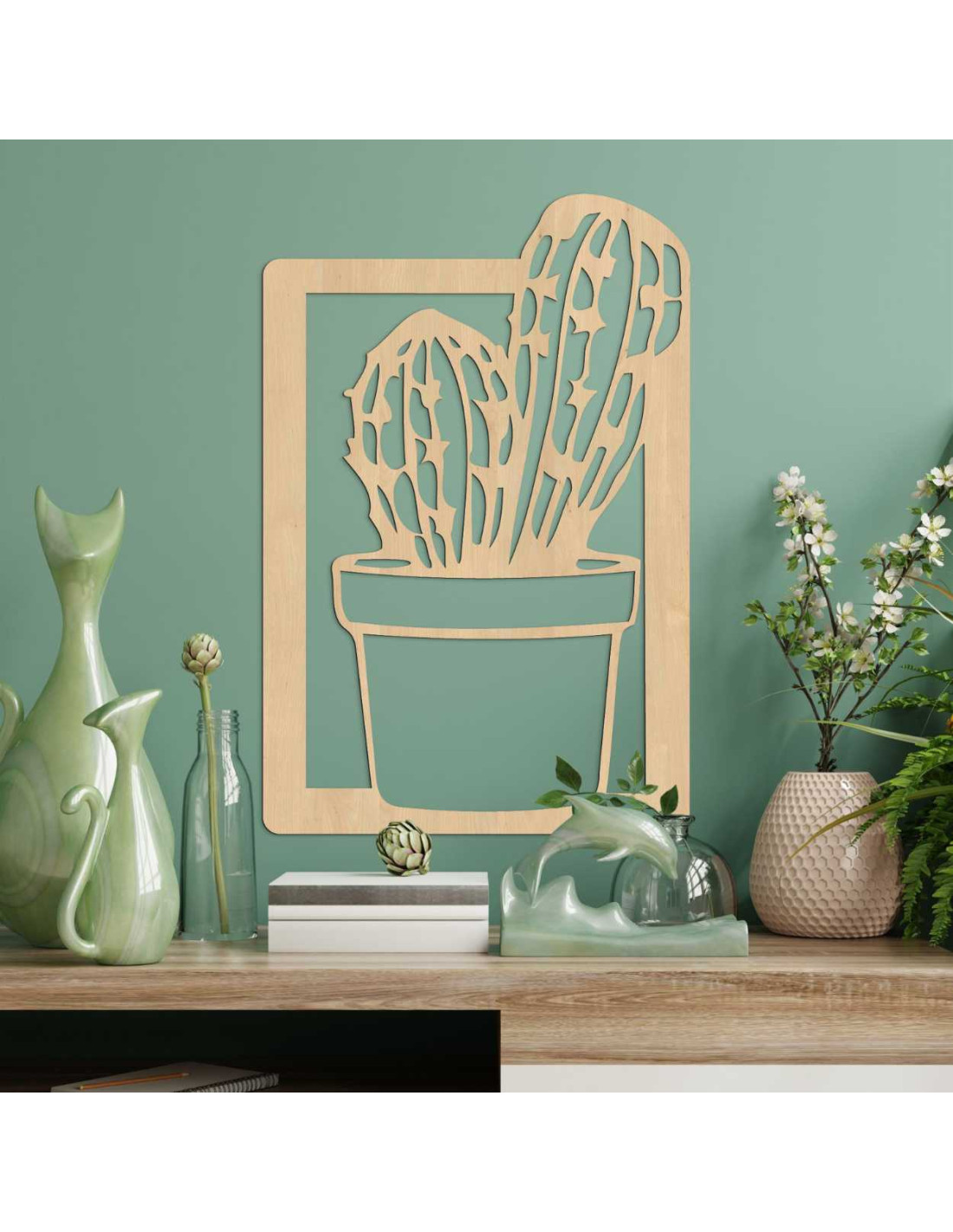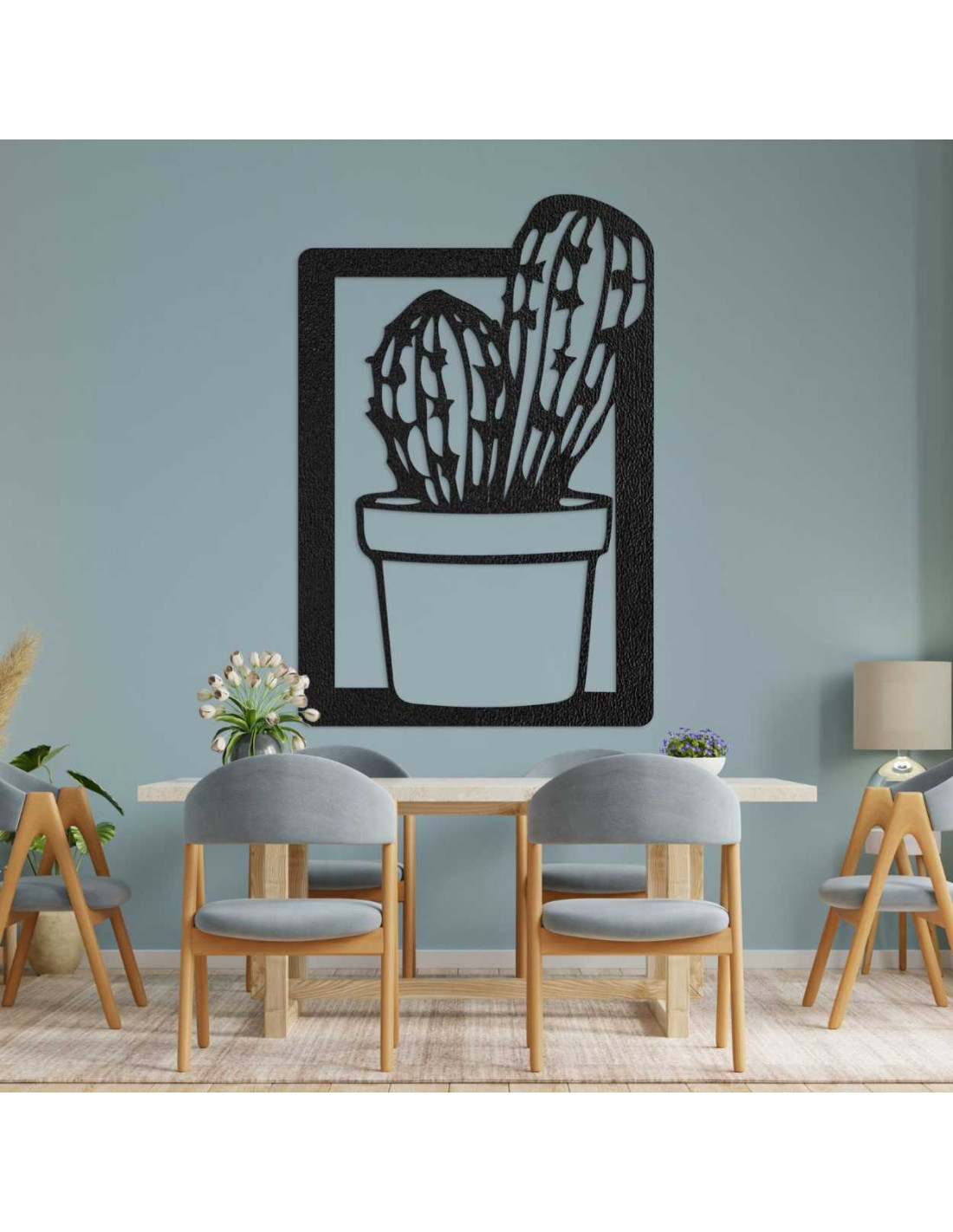 O pictură modernă cu cactus din lemn aduce farmecul naturii în interior într-o formă minimalistă.