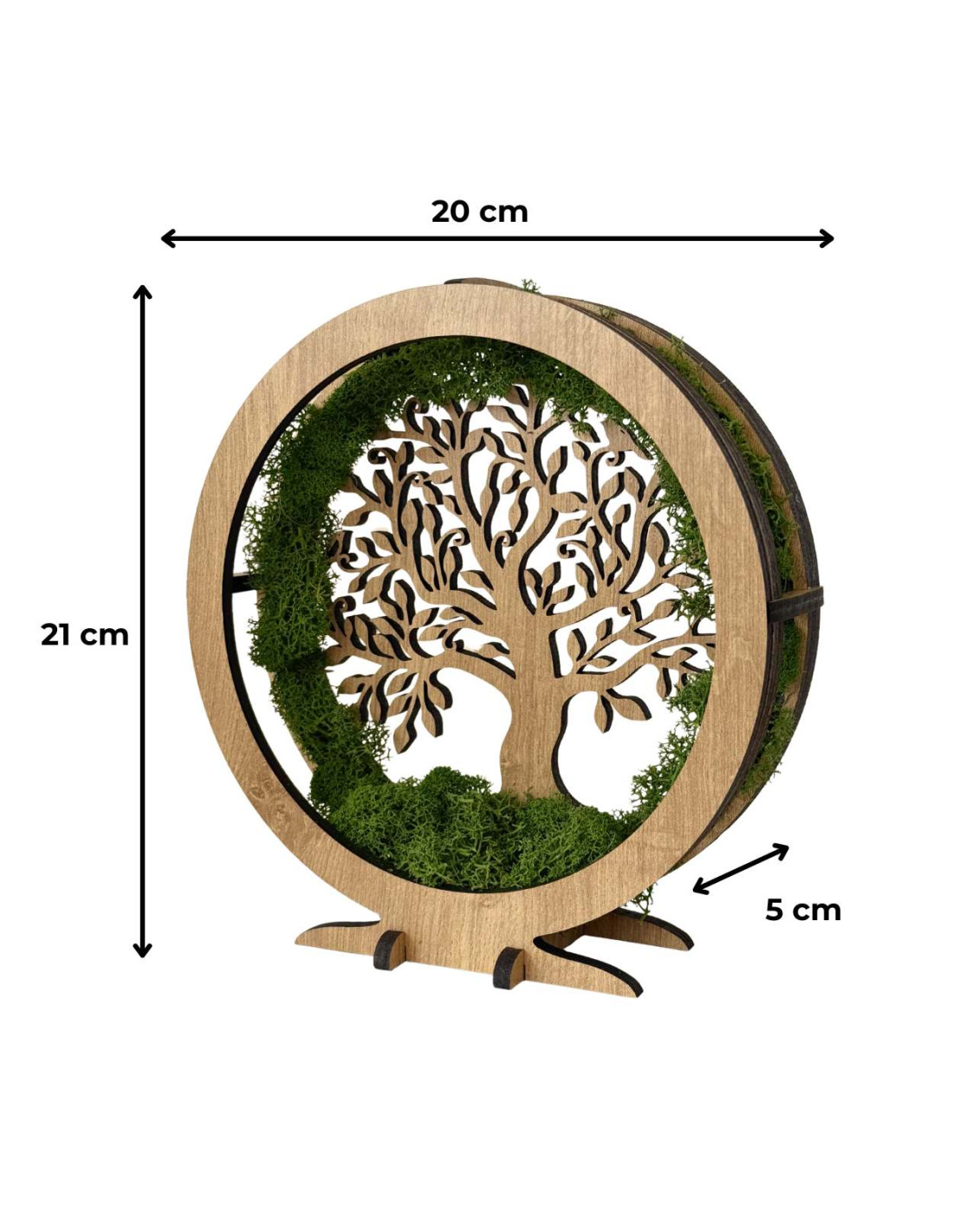 Decorațiune LED reglabilă cu brad al vieții, cu mușchi adevărat, într-o ramă de stejar.