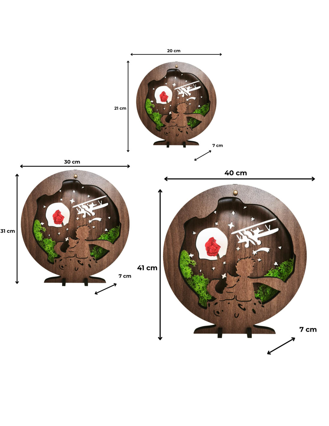 - Grosimea întregului decor, inclusiv suportul: 7 cm