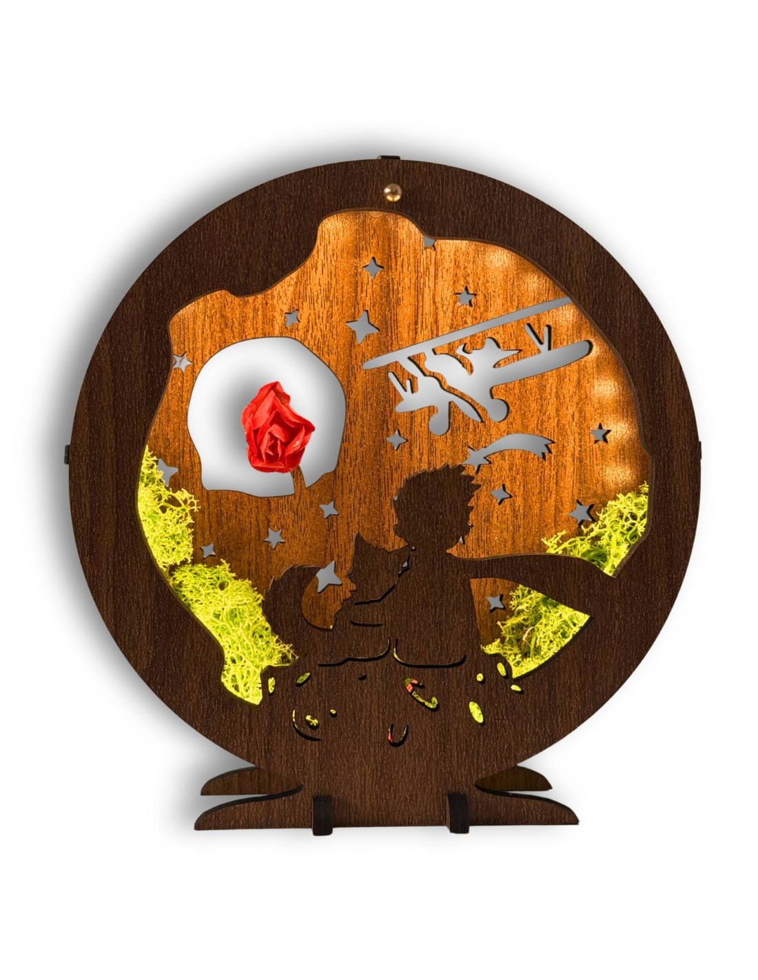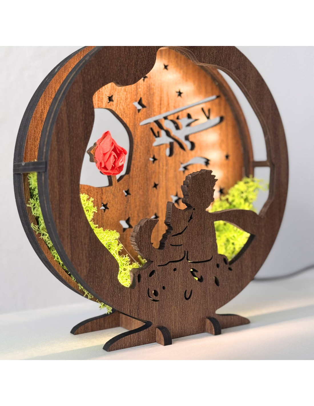 Decorațiune LED Micul Prinț cu avion | Nuc Wenge