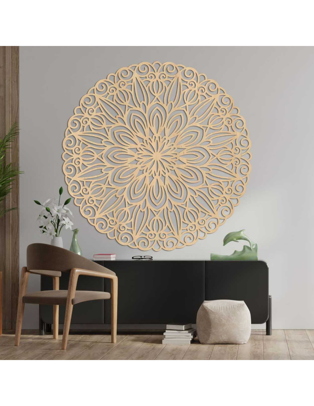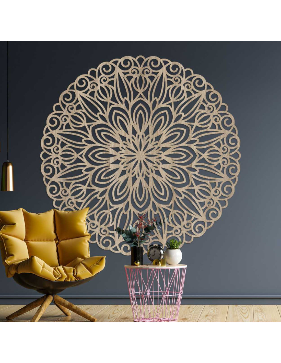 Mandala sculptată din lemn pentru perete, floarea timpului - ORIN