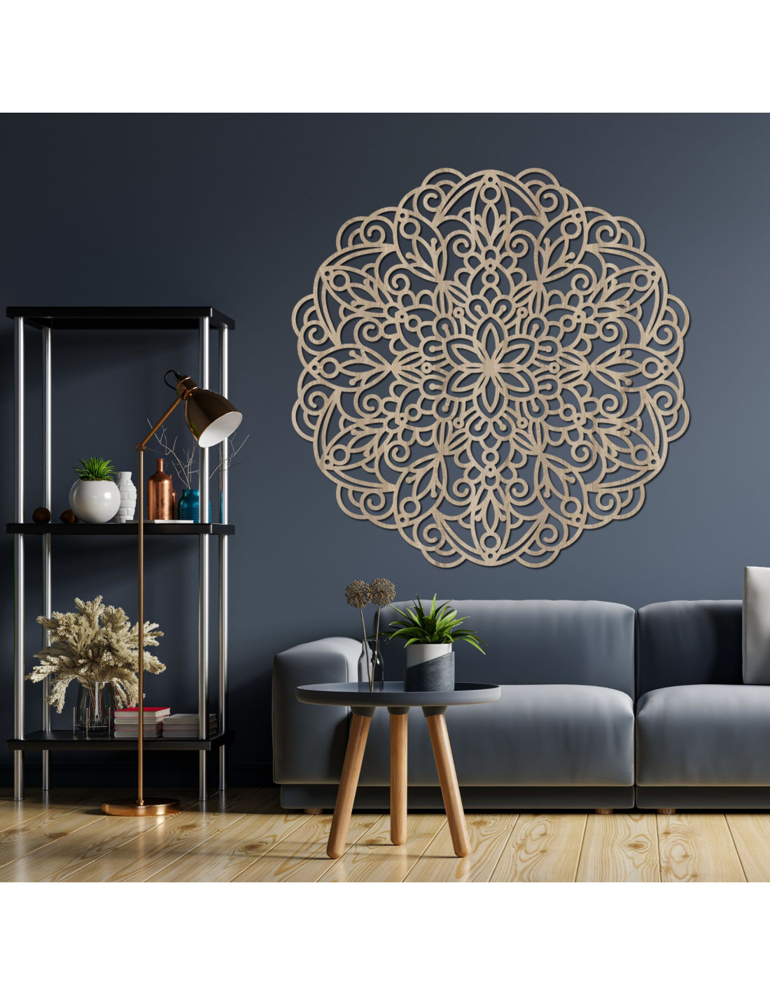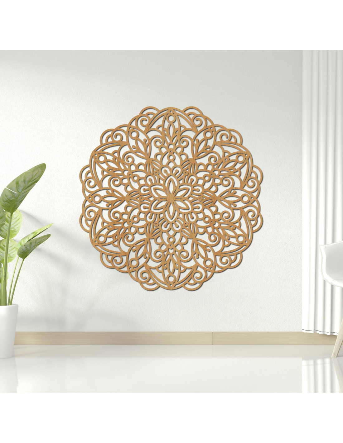 Mandala din lemn pe perete, decor floral geometric - MELLANY