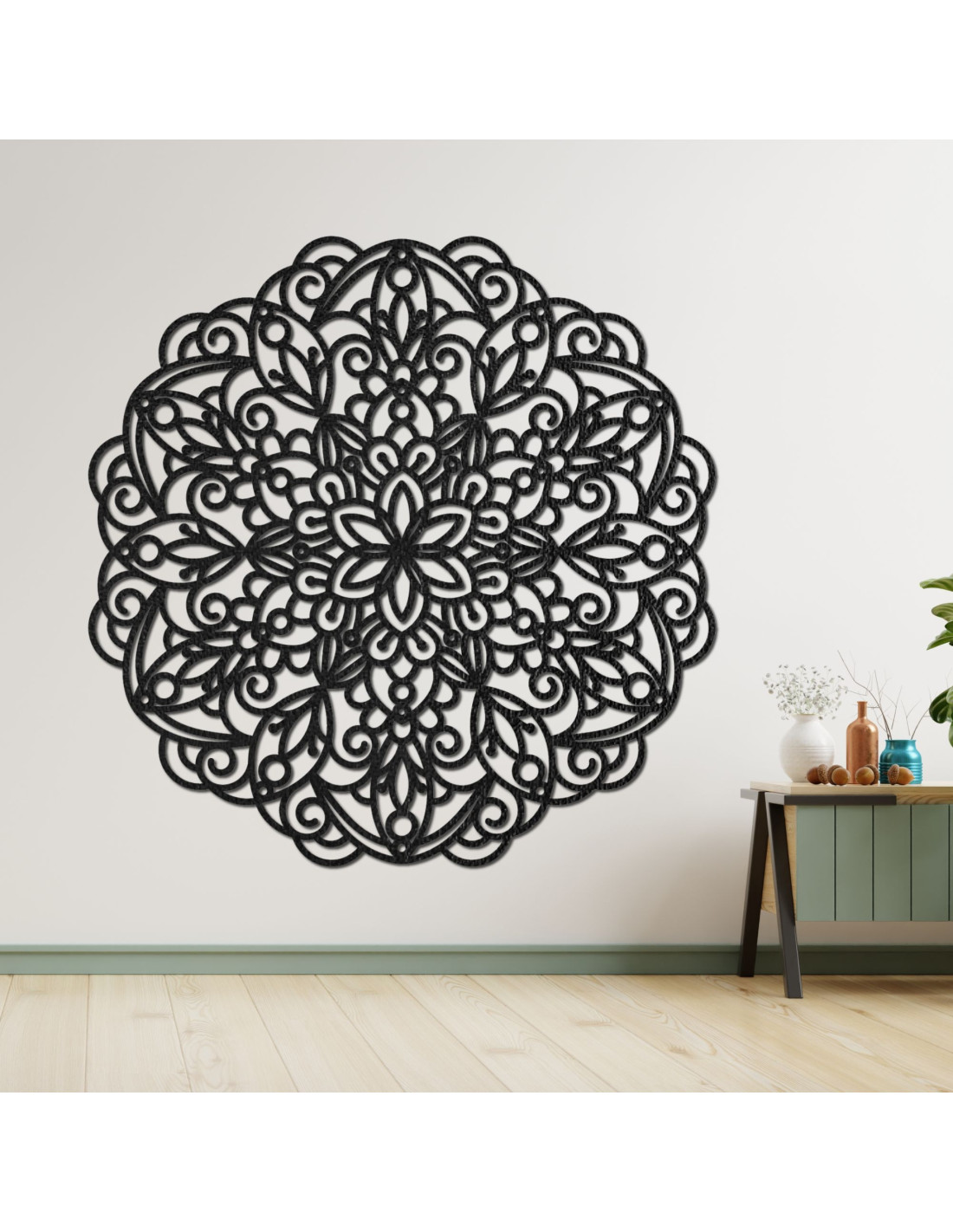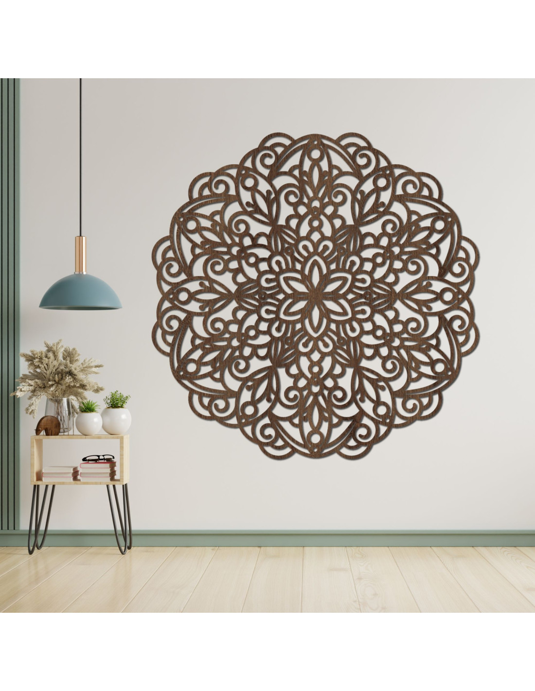 Mandala din lemn pe perete, decor floral geometric