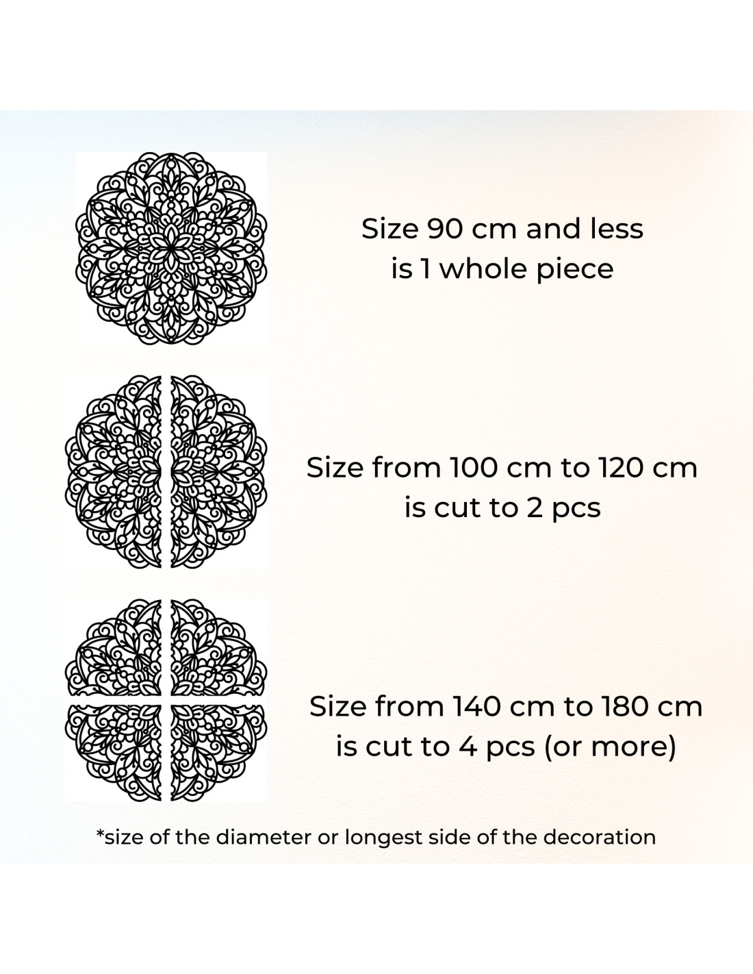 • Diametru 30 – 90 cm : mandală realizată dintr- o singură bucată .