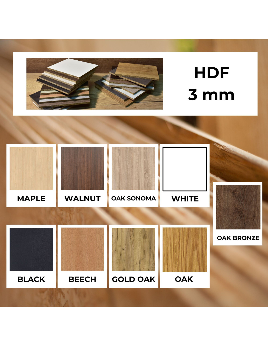 Placajul are o grosime de 5 mm / HDF are o grosime de 3 mm.