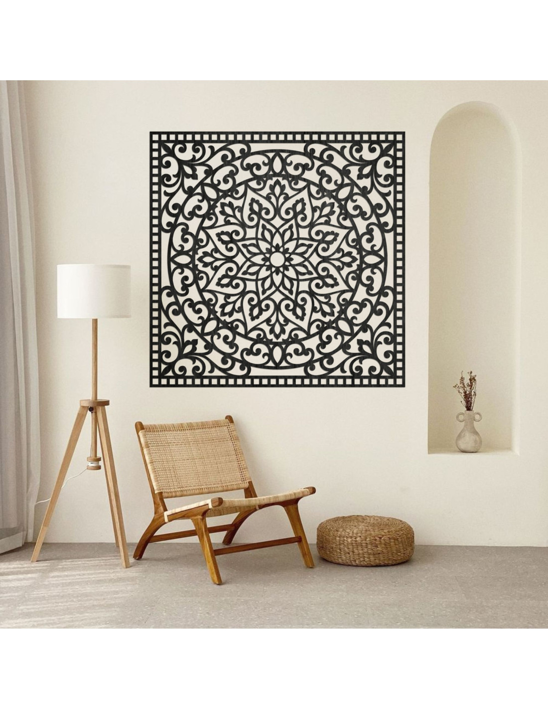 Mandala din lemn pentru perete, pătrată | SYRRENA