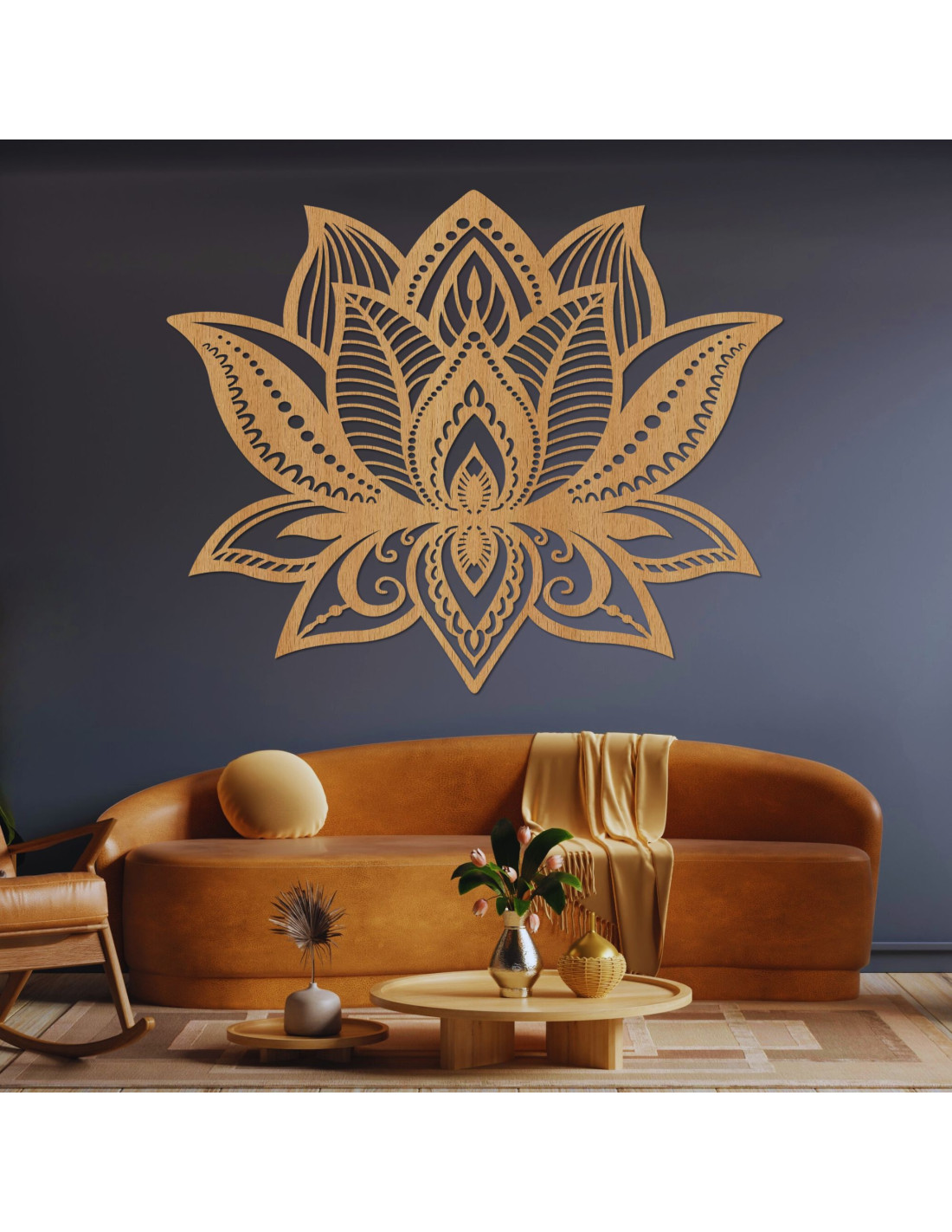 Pictură murală din lemn cu floare de lotus | LOTONIS