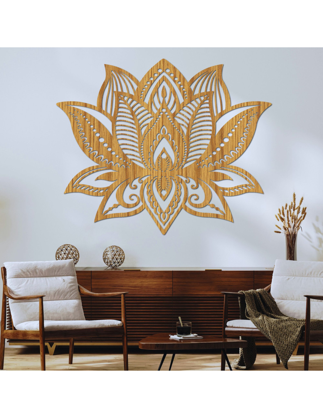 Pictură murală din lemn cu floare de lotus | LOTONIS