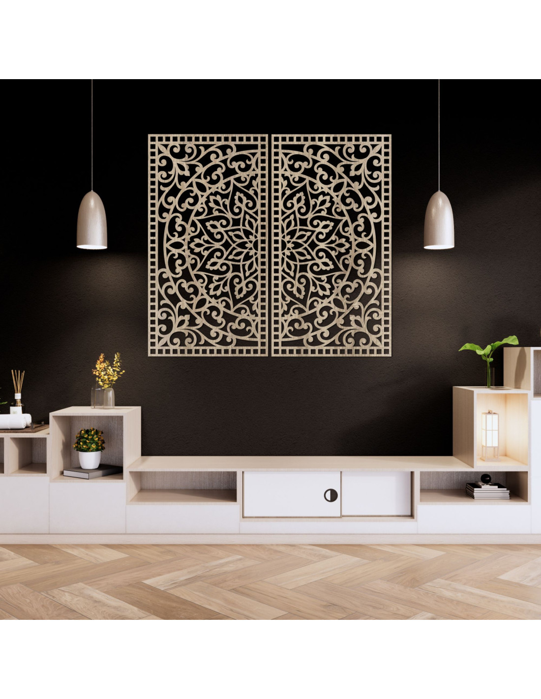 SentopDecorațiuni elegante din lemn, cu elemente ornamentale delicate, combină modele clasice cu designul modern. Designul simetric , cu atenție la detalii, creează un sentiment de armonie și echilibru . Această decorațiune este modalitatea perfectă de a adăuga un element artistic unic spațiului dumneavoastră. Datorită sculpturii precise , chiar și cele mai mici detalii vor ieși în evidență.
