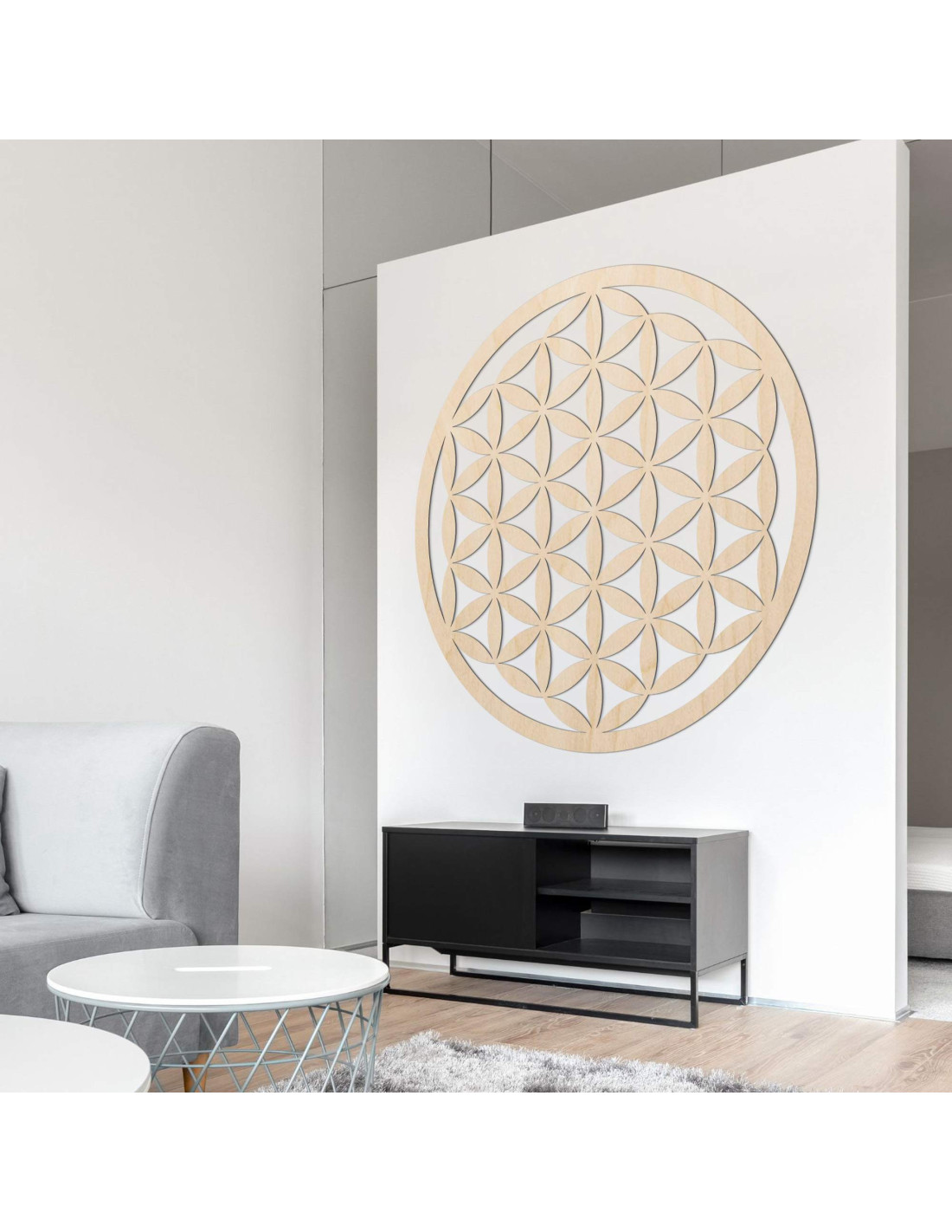 O decorațiune din lemn cu motivul florii vieții vă va înviora spațiul cu un simbol al unității, armoniei și energiei nesfârșite.